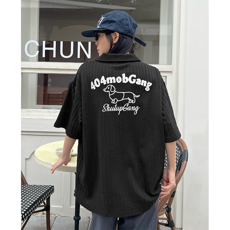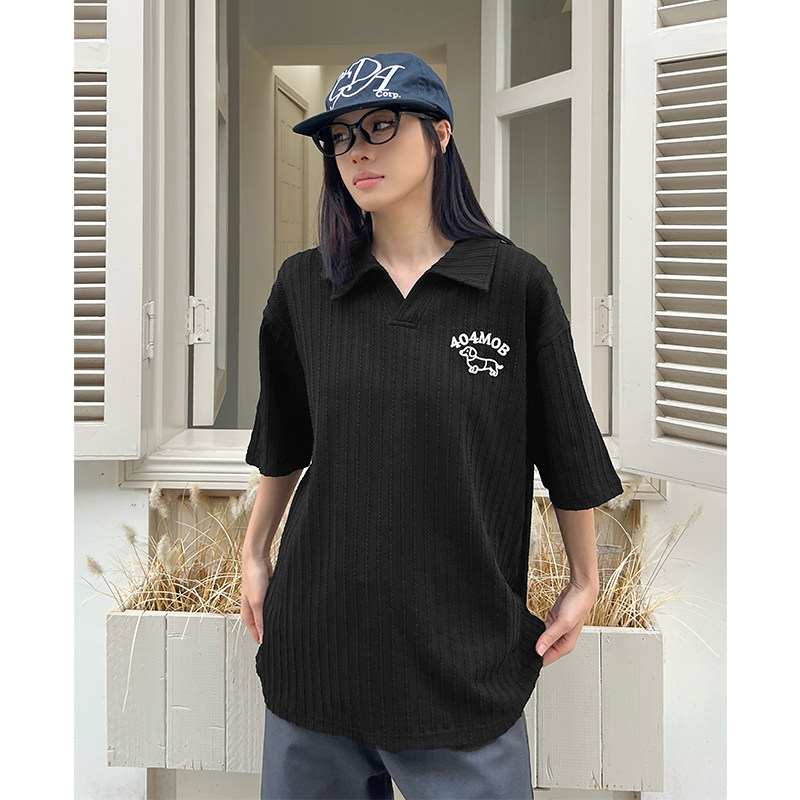 404MOB麦穗纹肌理短袖POLO衫男女款2026夏高级感翻领V领重磅T恤衫