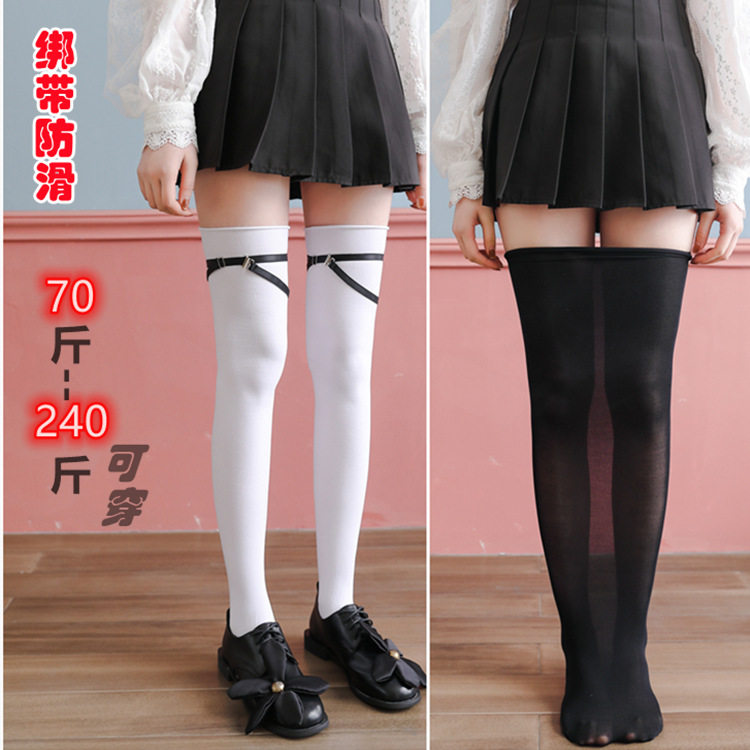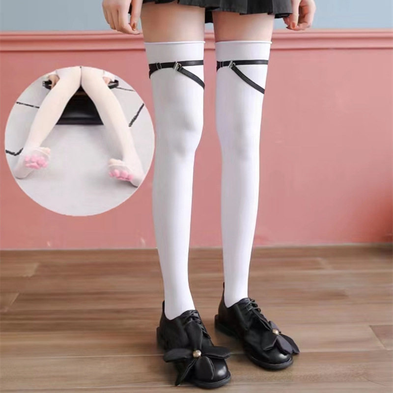 3D猫肉垫日系纯色加大筒丝袜春夏绑带大码防滑大腿个子cos袜