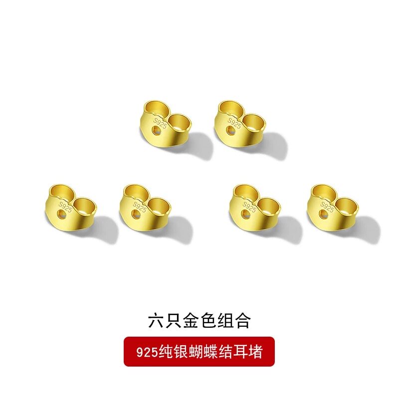 S925纯银 4mm 蝴蝶耳堵耳钉耳环耳塞耳背耳钉后托耳帽耳饰配件