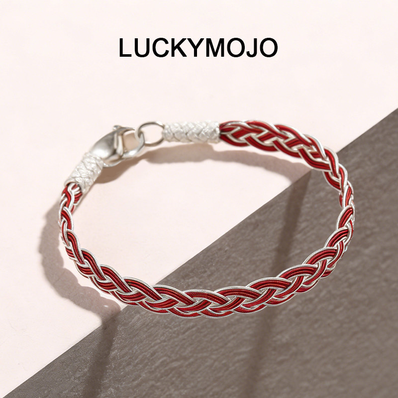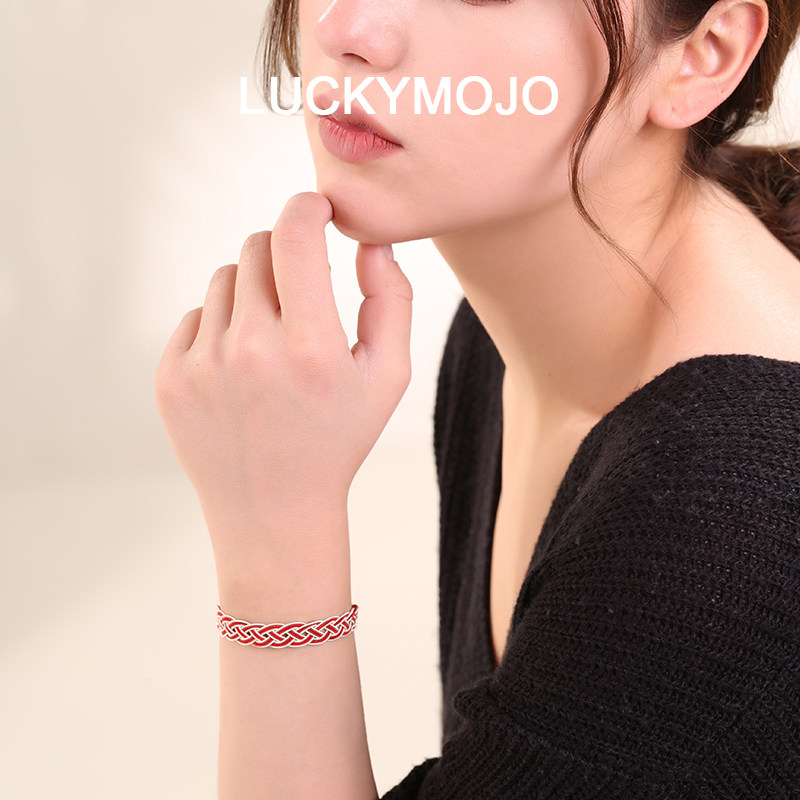 本命年红绳99足银男女小众编织手链礼物新中式红色