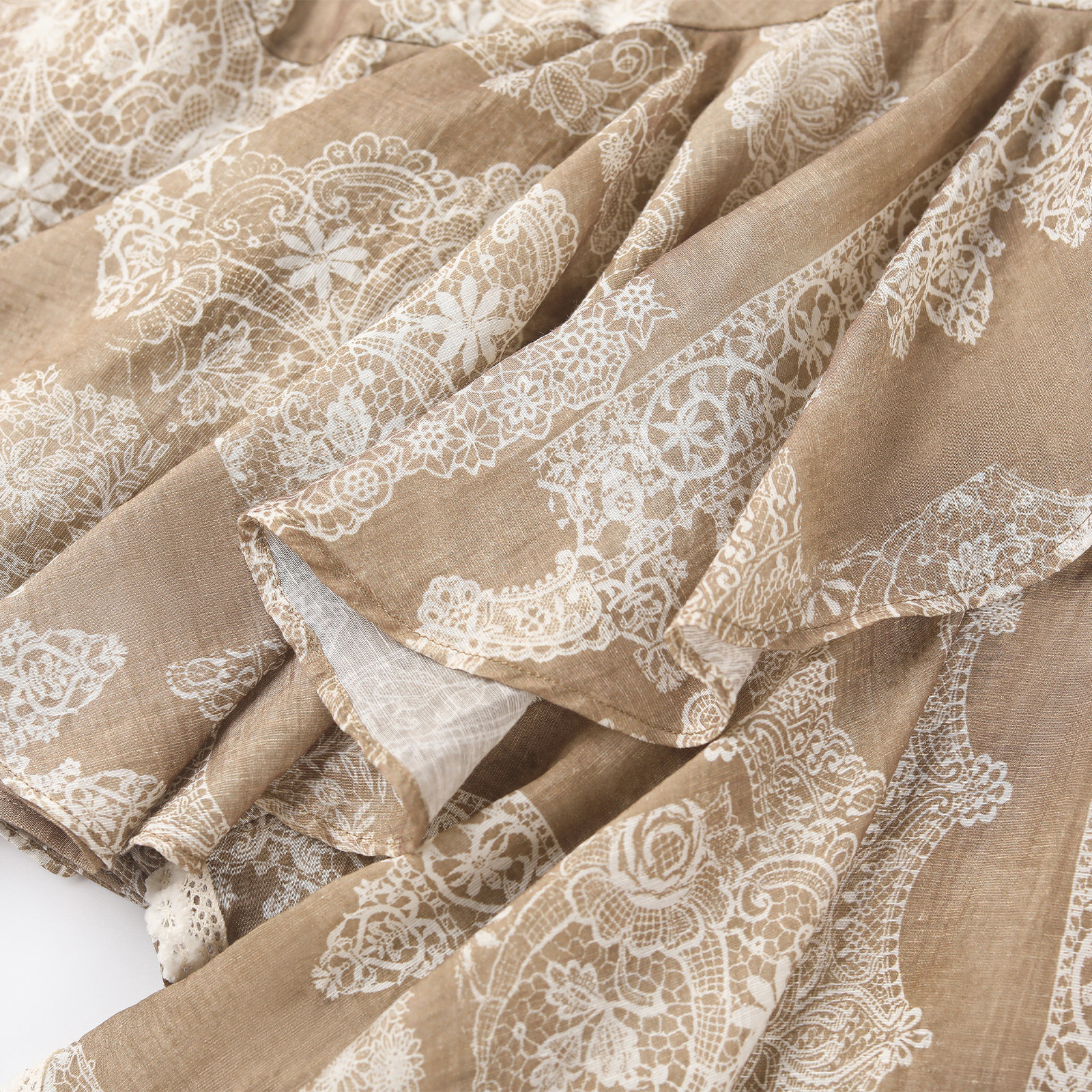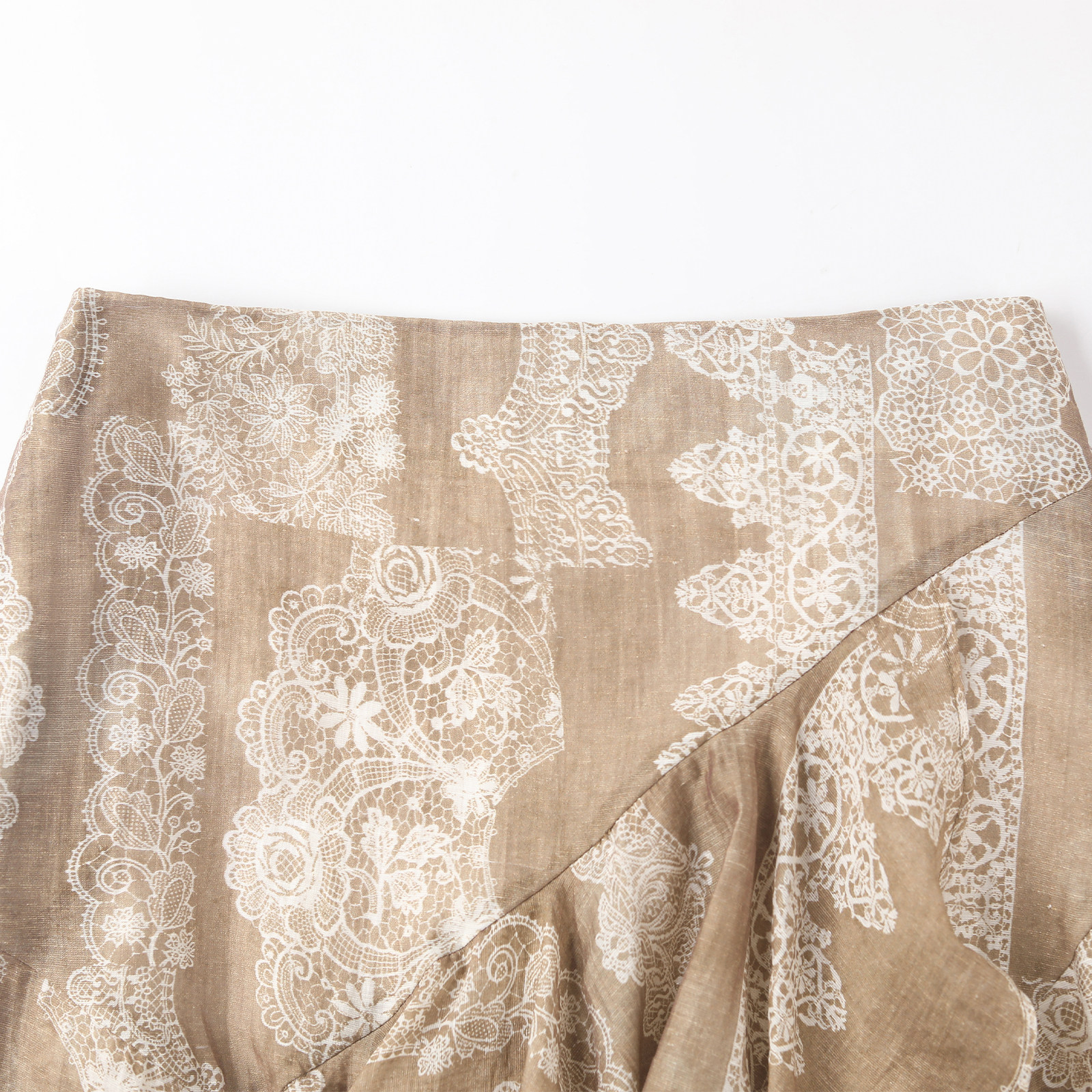 wana try天丝蕾丝印花不规则半裙春夏新品气质休闲咖色底半裙女