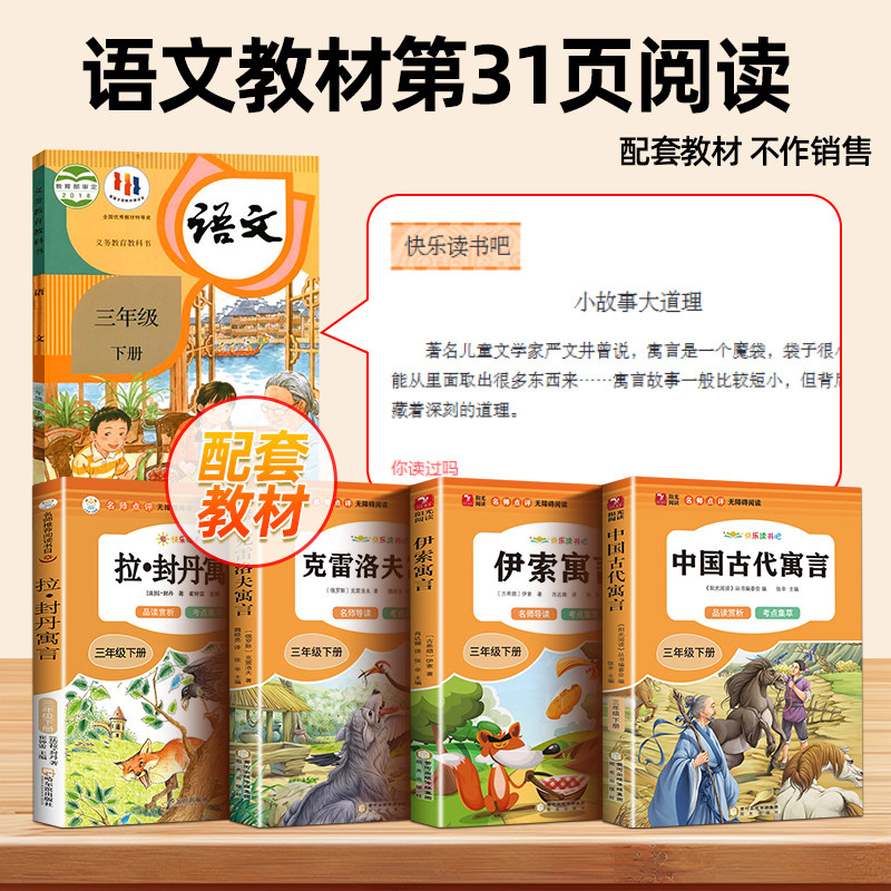 天猫正版【全套4册】小学生读书吧三年级下册古代寓言故事伊索寓言克雷洛夫寓言拉风丹寓言