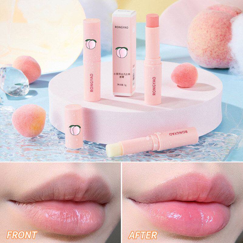 容耀水蜜桃润唇膏滋润补水保湿变色凡士林唇膏唇部护理