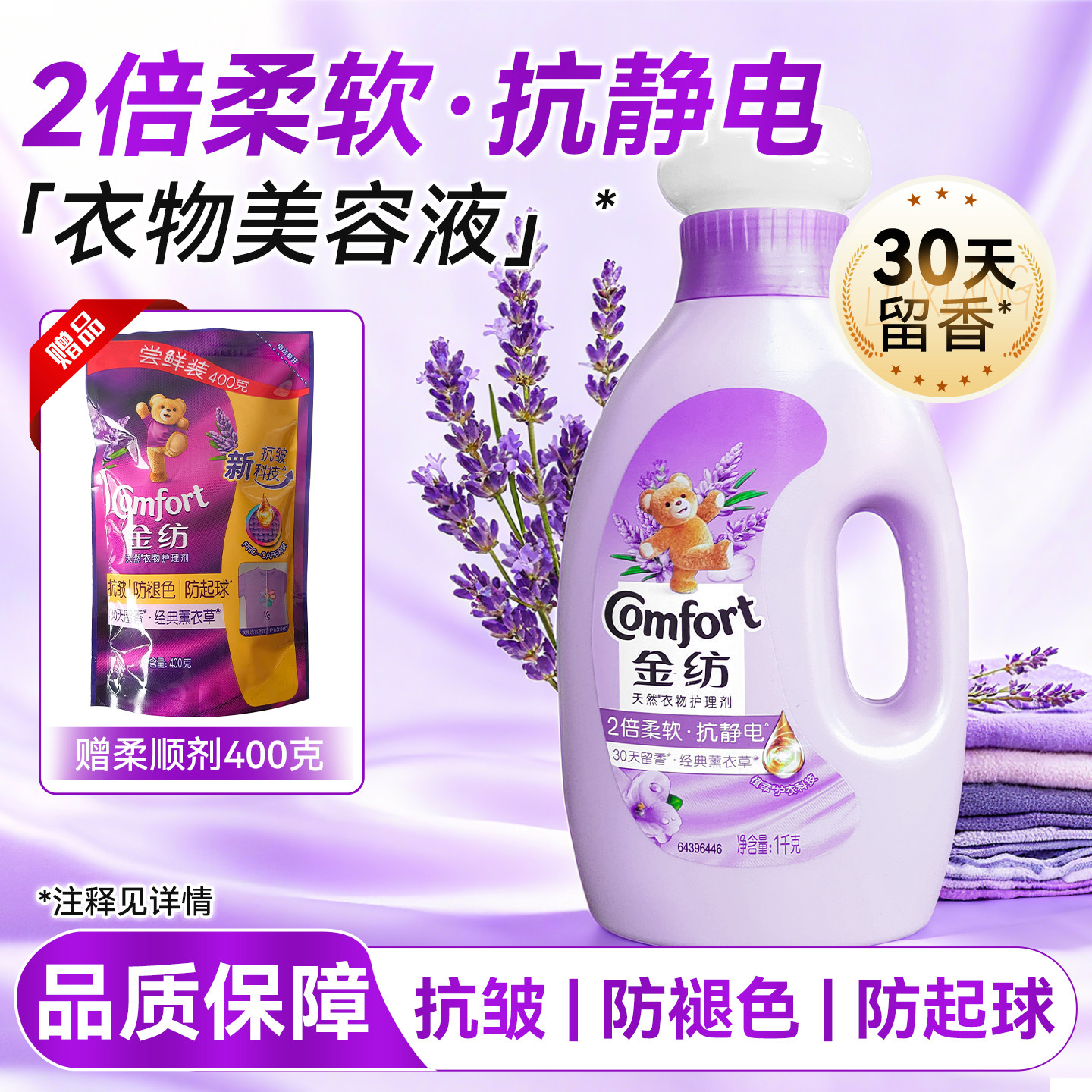 金纺衣物柔顺护理剂薰衣草防静电秋冬家用实惠装抗皱防褪色留香