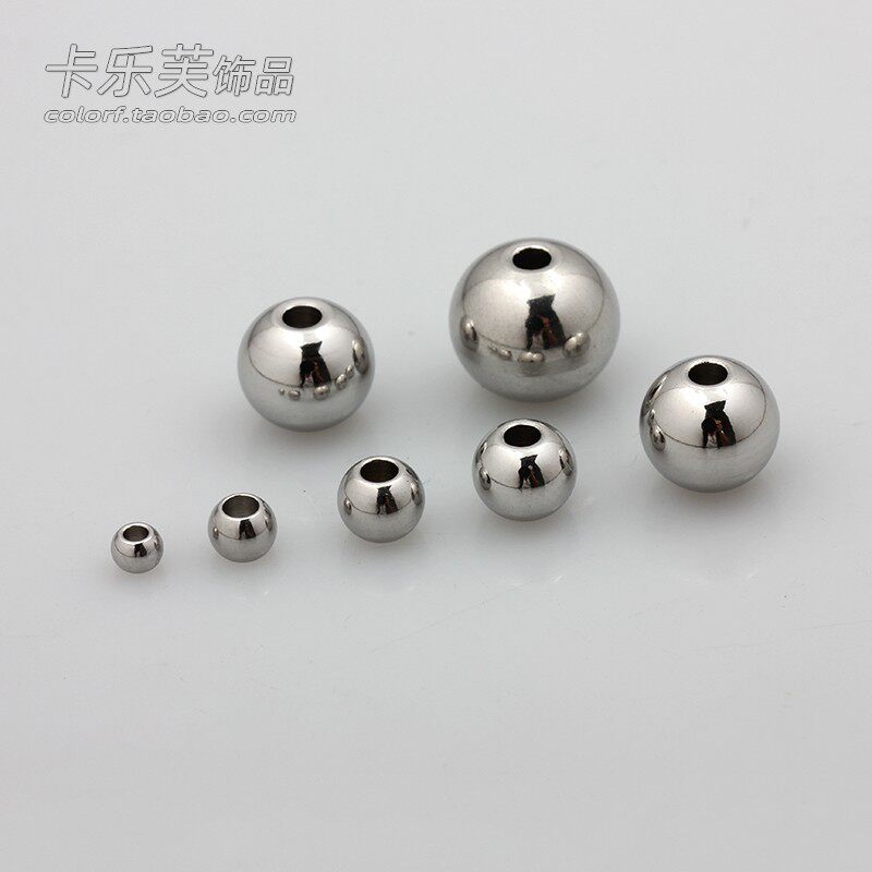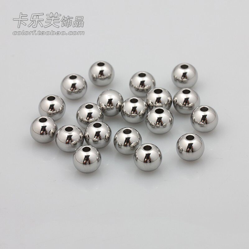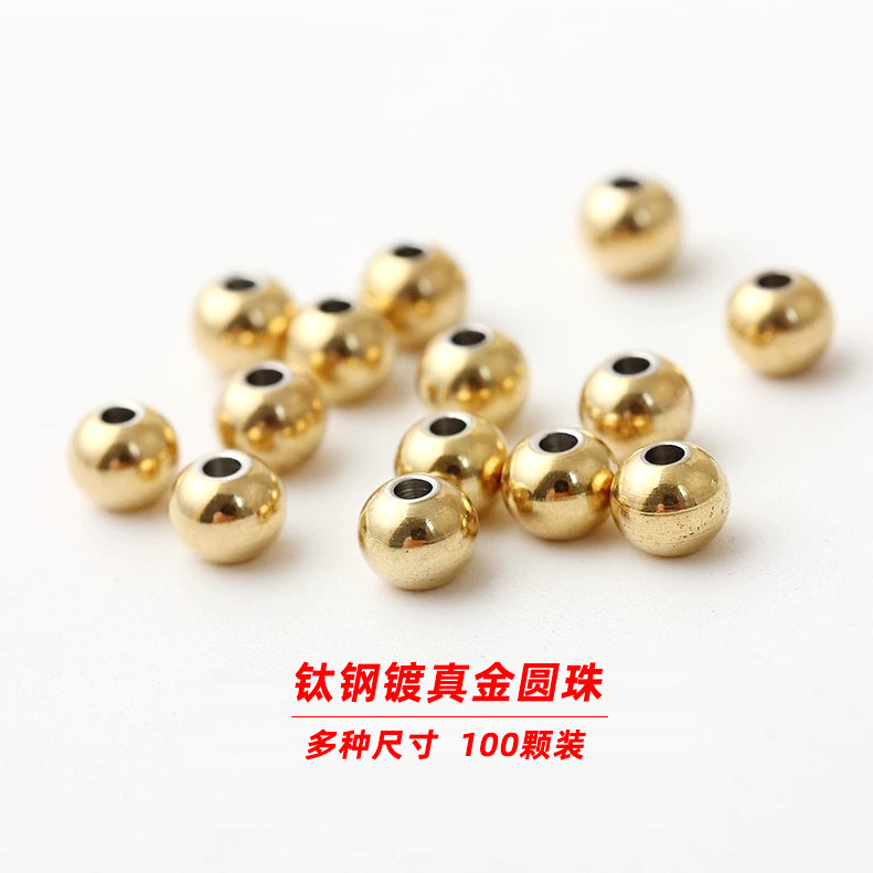 不掉色钛钢圆珠镀18K金光面珠子制作项链隔珠串珠手链散珠diy配件