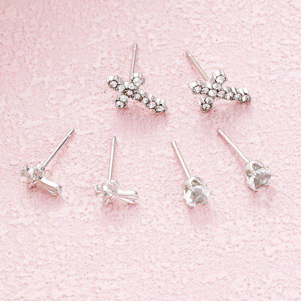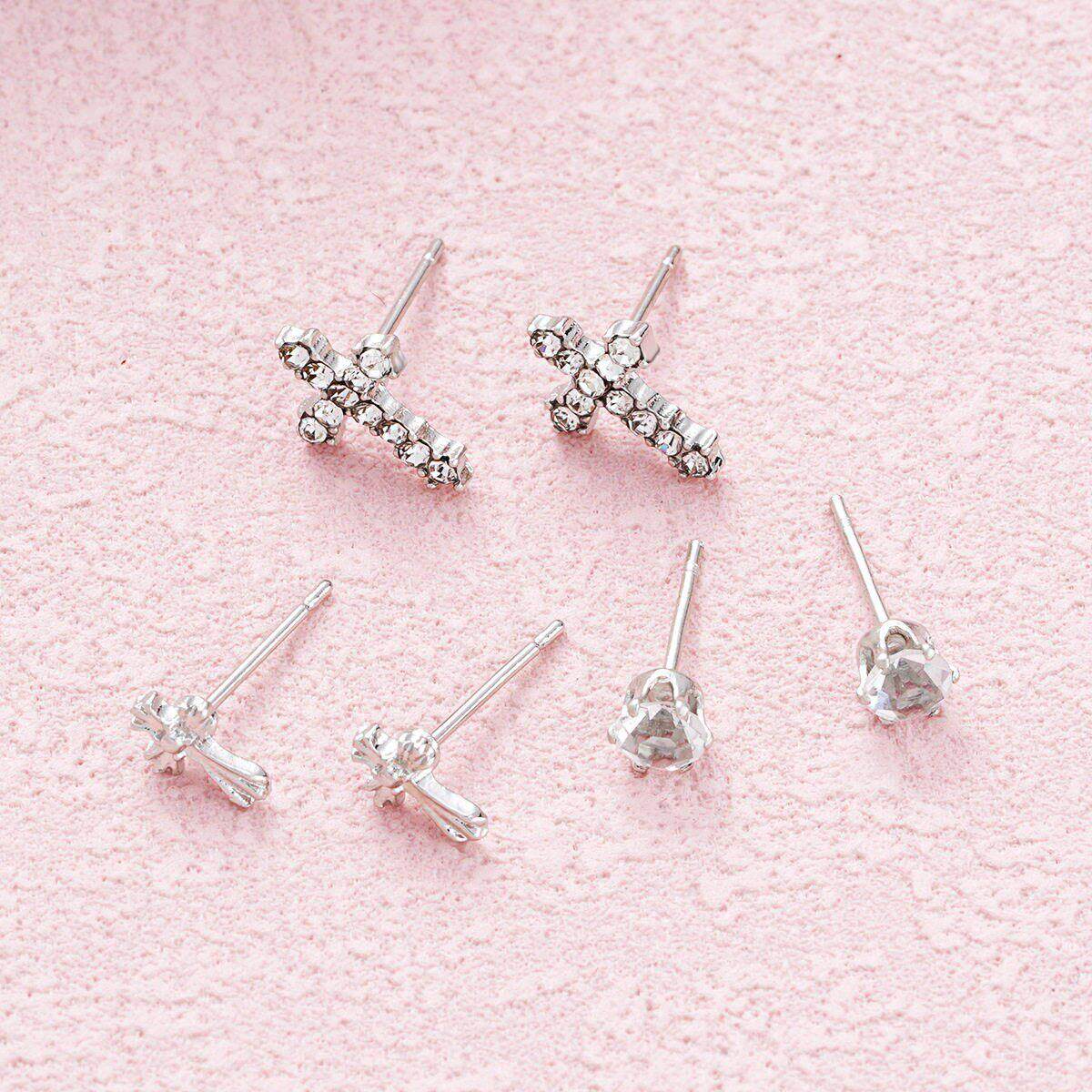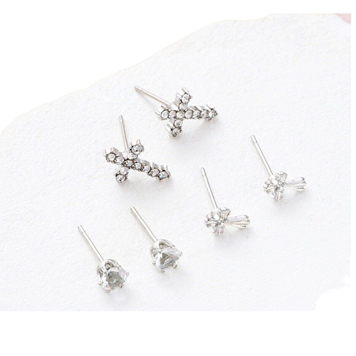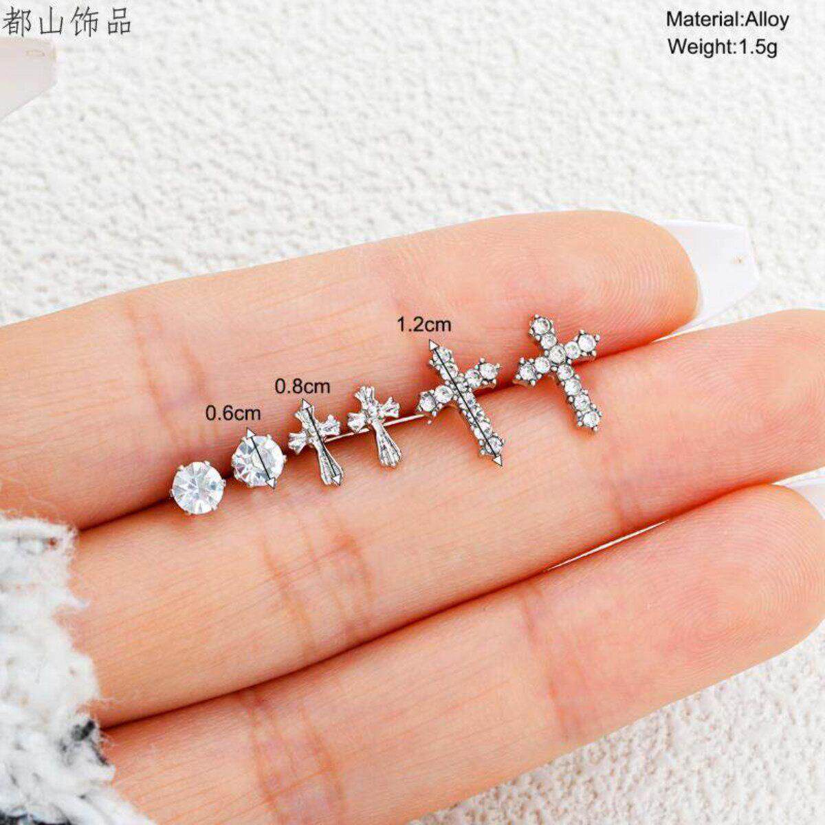 Cross earring set of 3 pieces跨境新款点钻十字架耳钉3件套套装