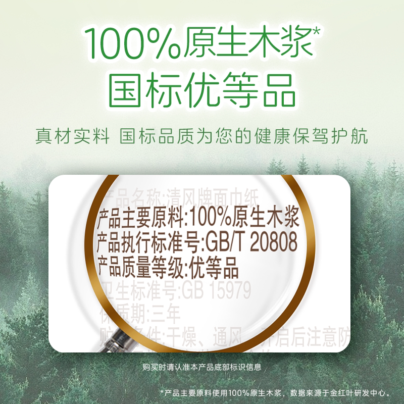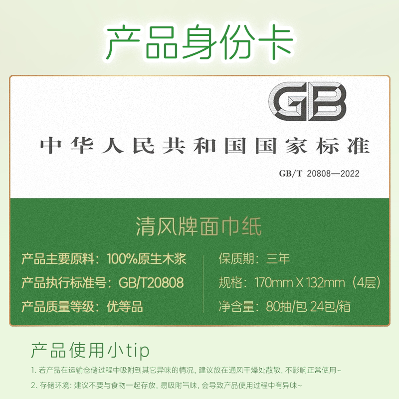 清风抽纸4层80抽1包餐巾纸面巾纸家用实惠装大包擦手卫生纸巾zd
