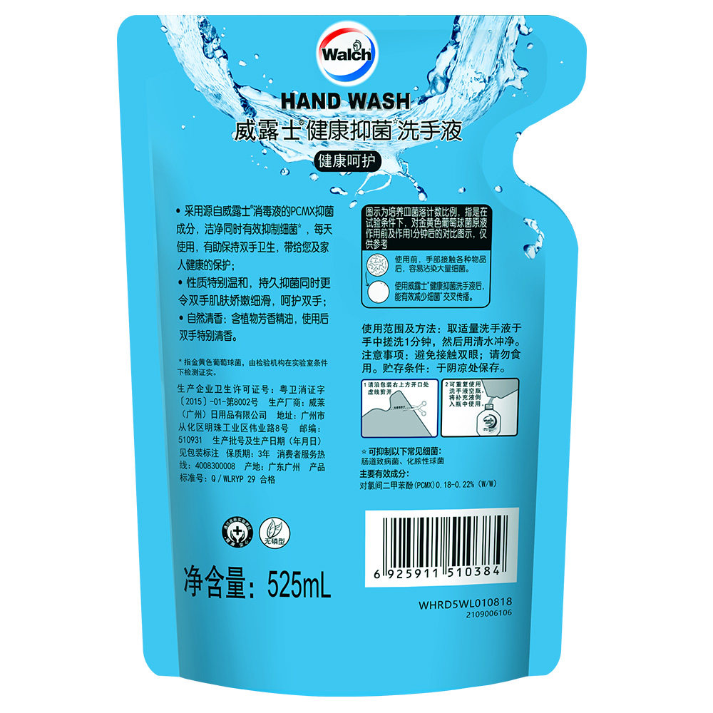 威露士洗手液健康呵护滋润宝宝家庭装抑菌家用补充装易冲水袋装
