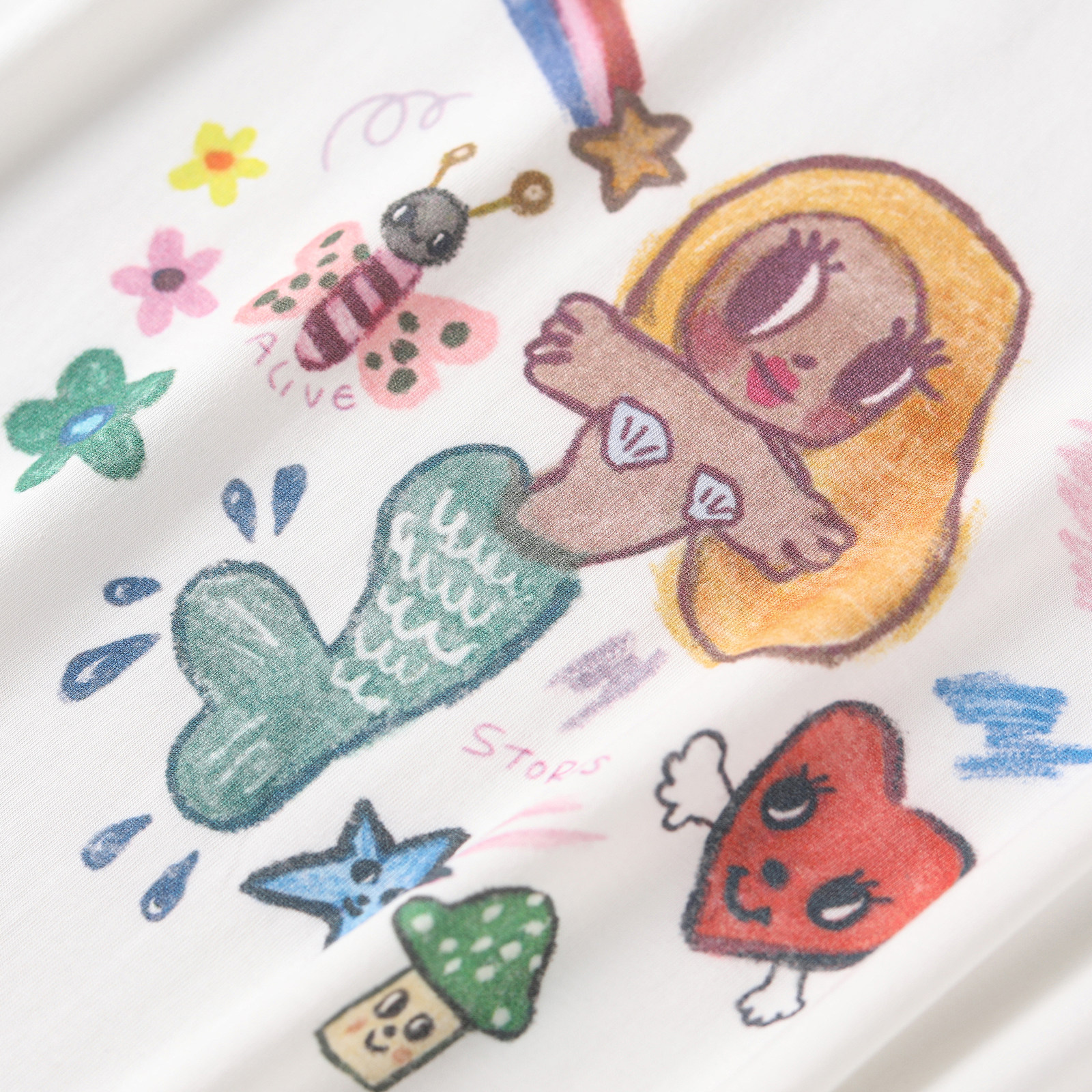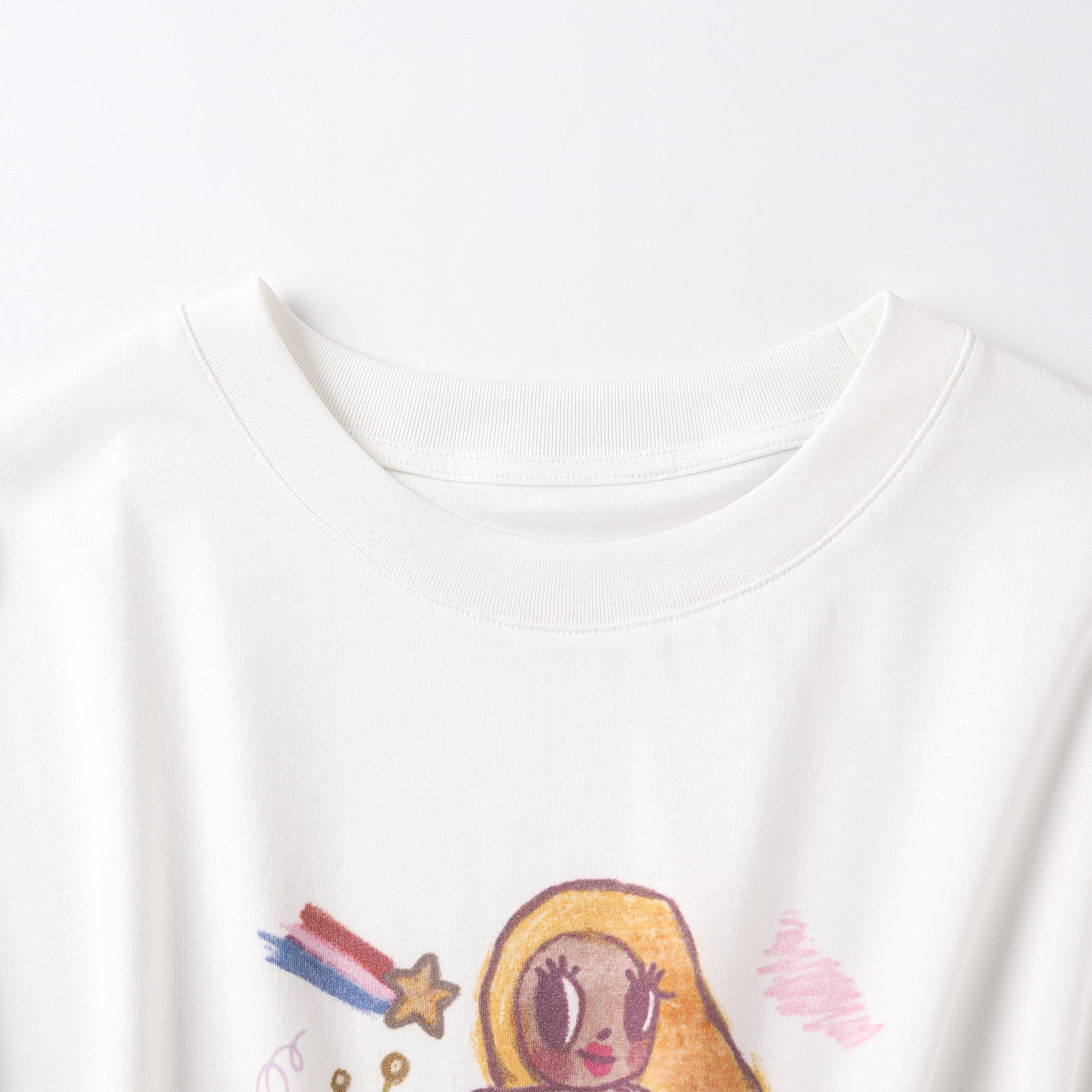 wana try纯棉手绘卡通人鱼小公主T恤春季新款宽松休闲百搭短袖女