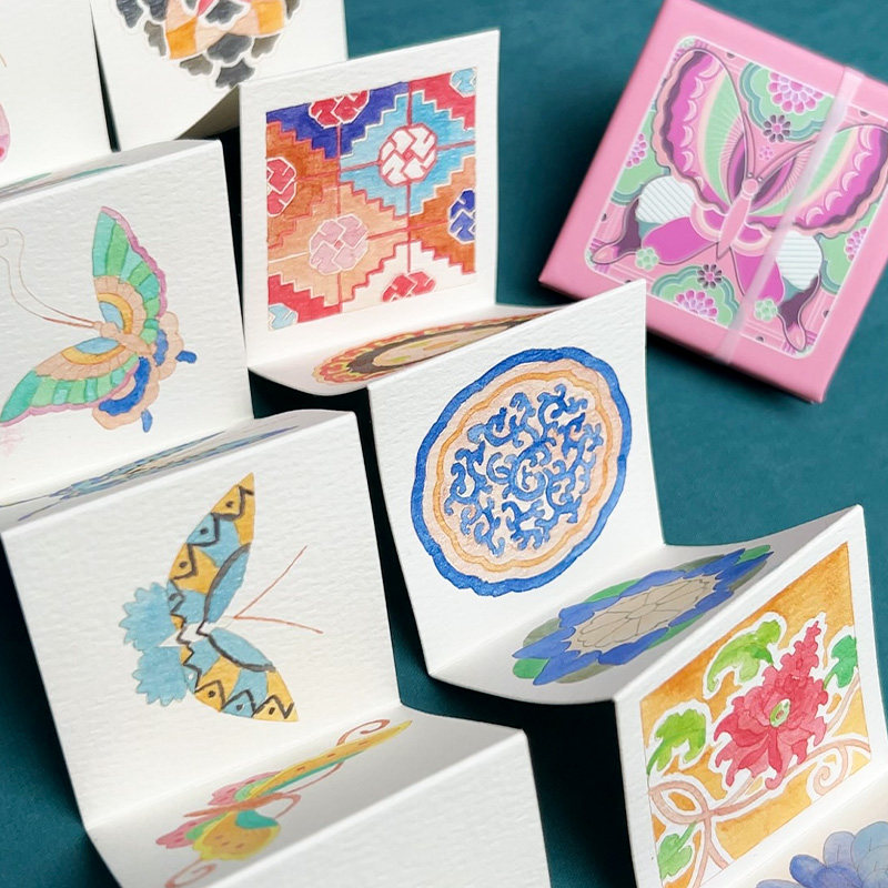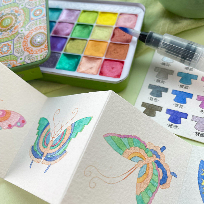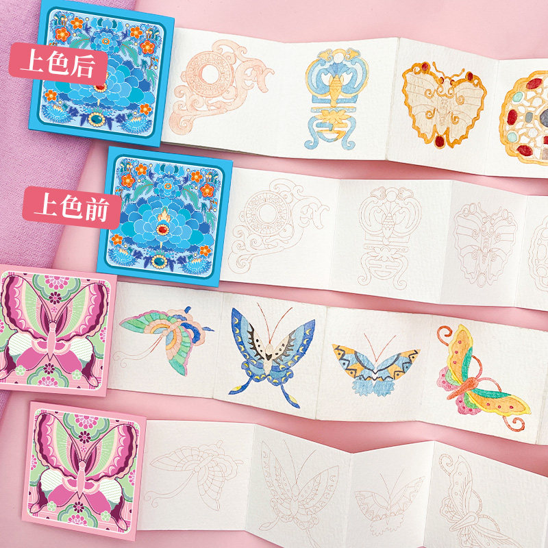 飞乐鸟珠光水彩颜料织锦绣彩琳琅珍宝蝴蝶珠宝纹样涂色线稿本绘画