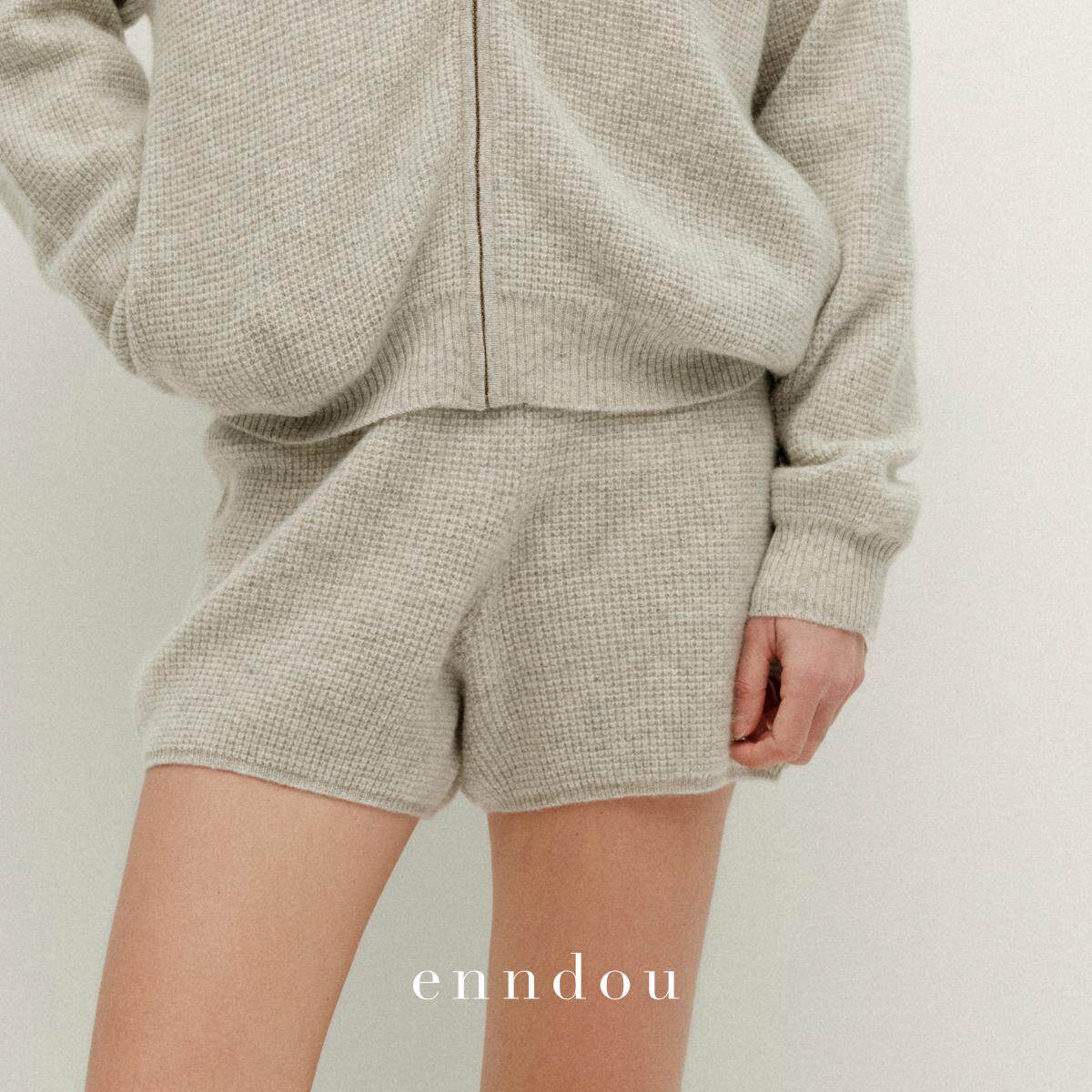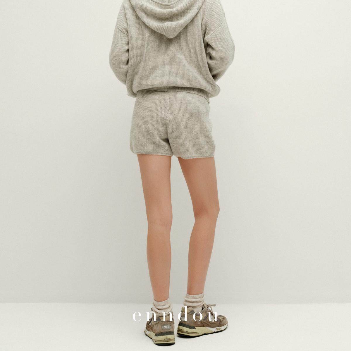 enndou 100%纯山羊绒裤子女春秋新款针织华夫格抽绳休闲短裤