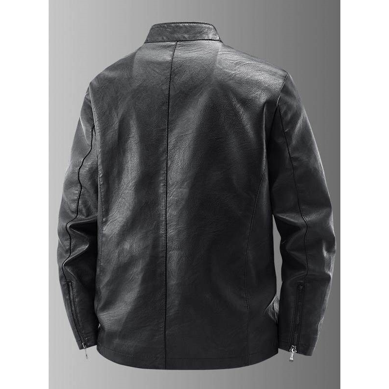 海宁真皮皮衣男立领加绒加厚修身休闲潮流帅气皮夹克机车服外套