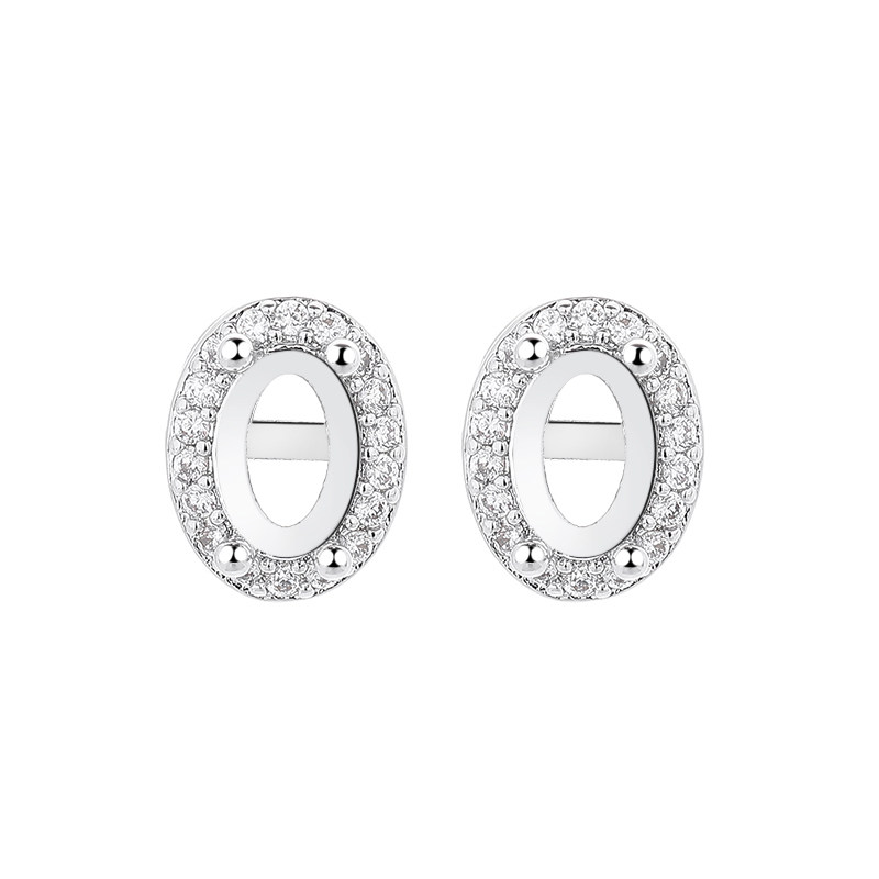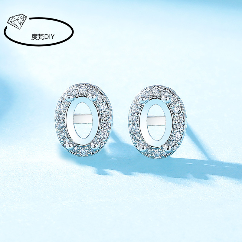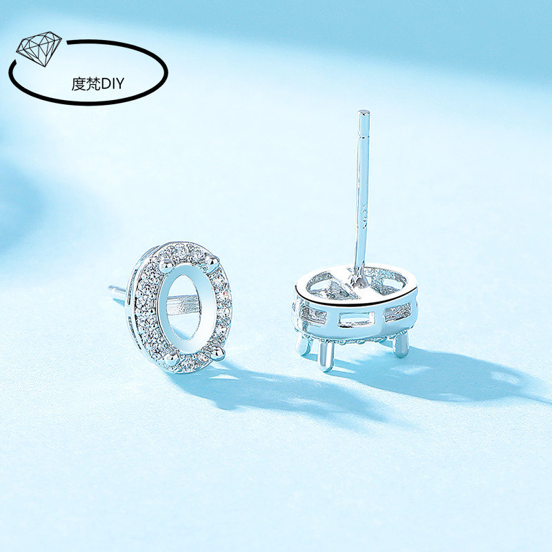 欧美微镶女耳饰耳钉空托diy镶嵌椭圆形华子钻翡翠蛋面托仿925银托