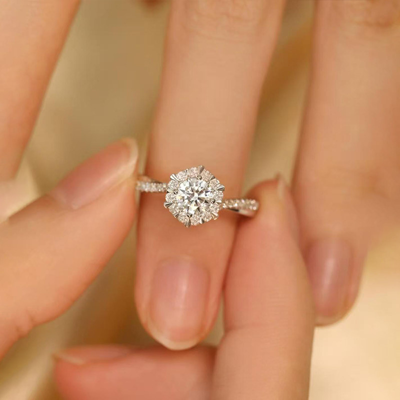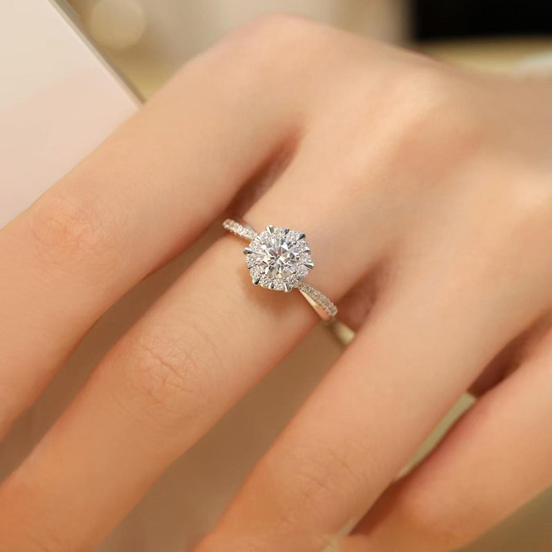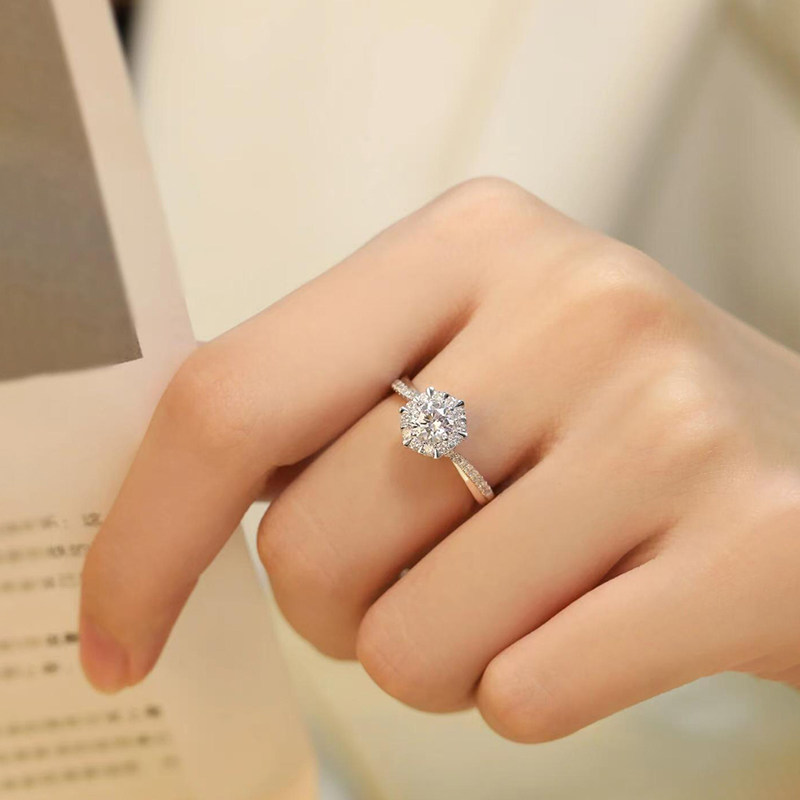 纯银情侣对戒莫桑石钻戒男女一对1克拉戒指求结婚戒指送女友礼物