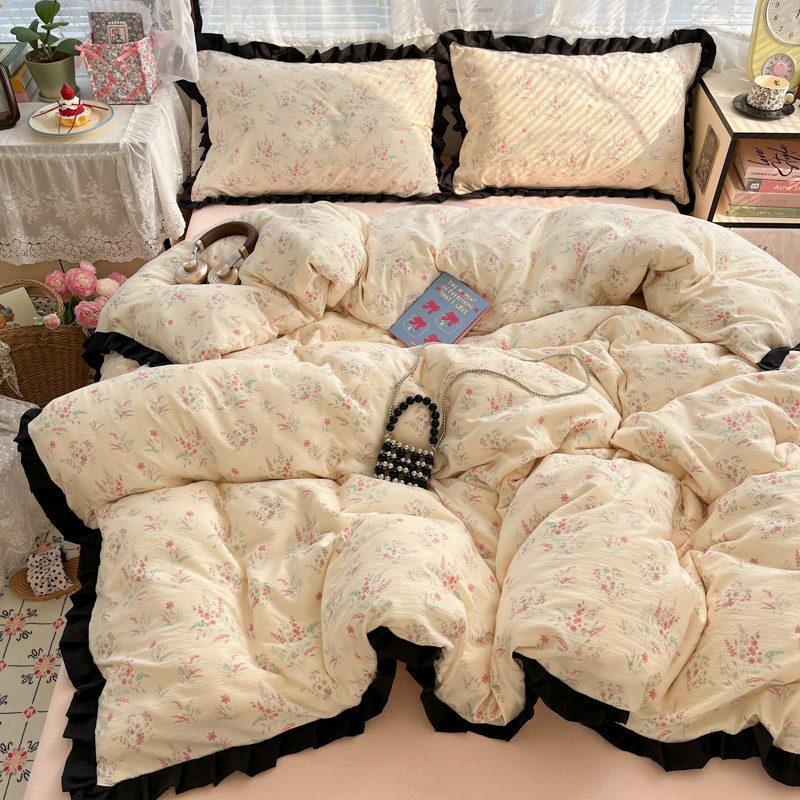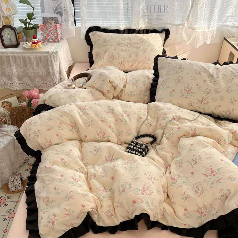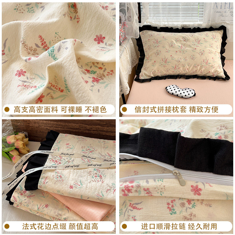 法式花边双层纱床上四件套单件被罩2025新款床单被套宿舍三件套4