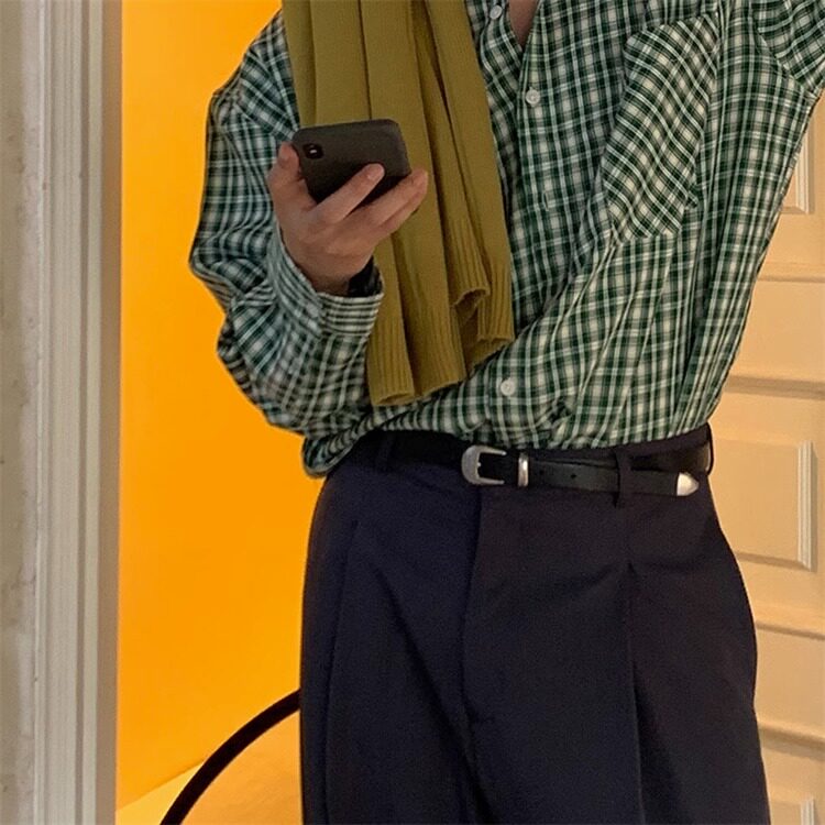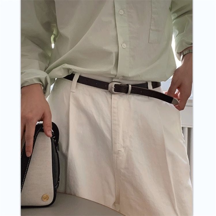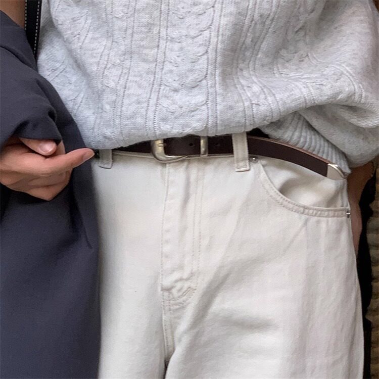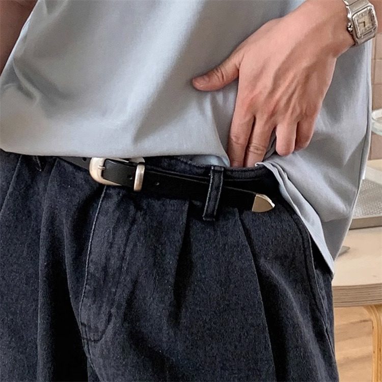 韩国代购男装意大利牛皮真皮时尚百搭腰带窄款轻熟复古金属扣皮带