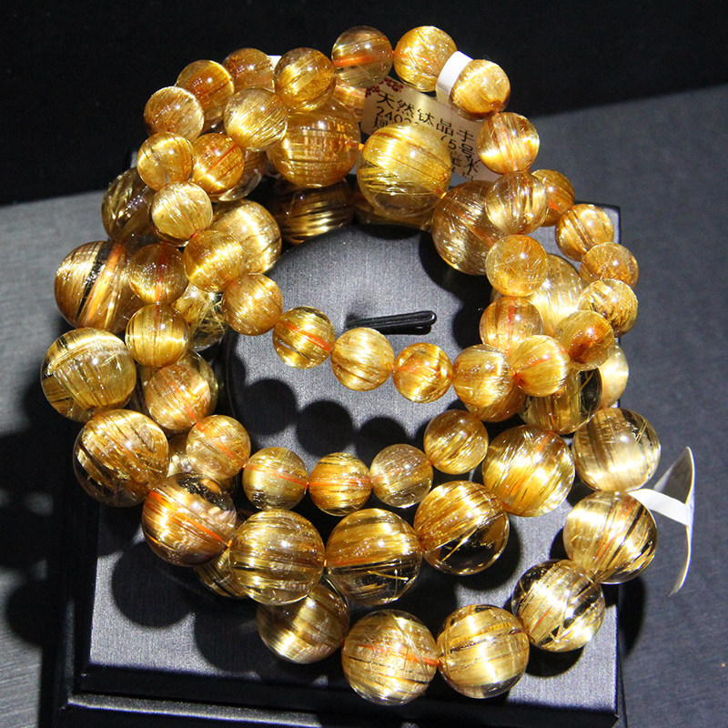 天然金发晶手串钛晶顺发猫眼石绿发晶手链女黄水晶手串男礼物礼品
