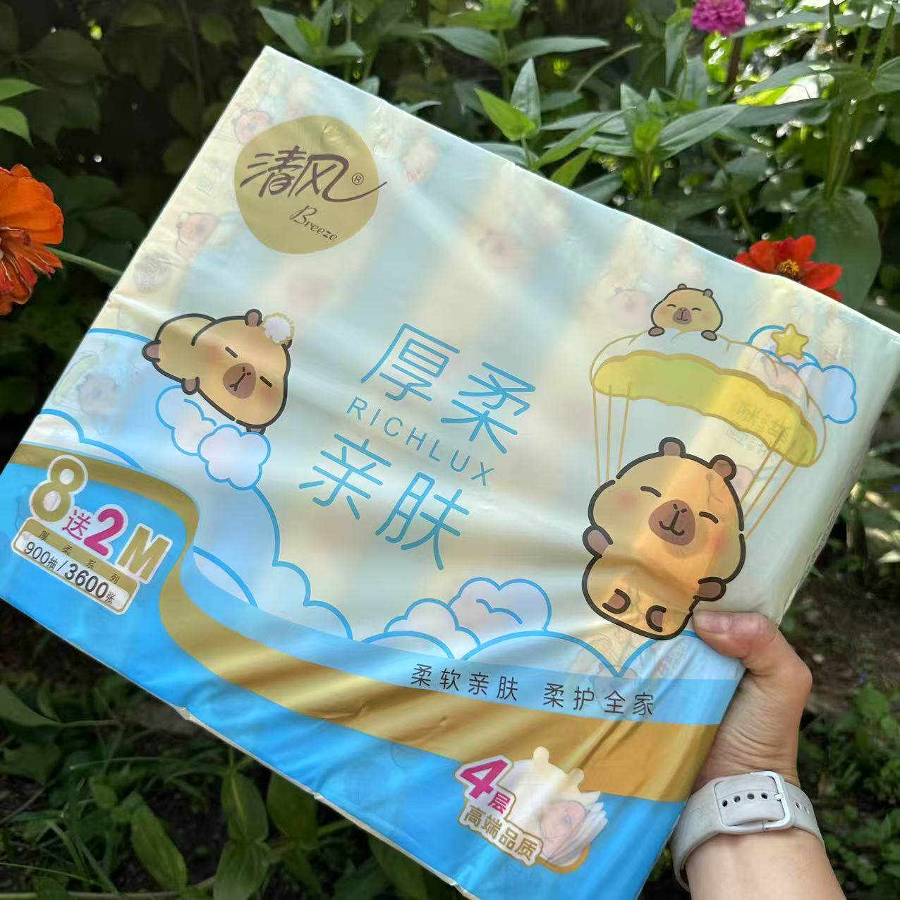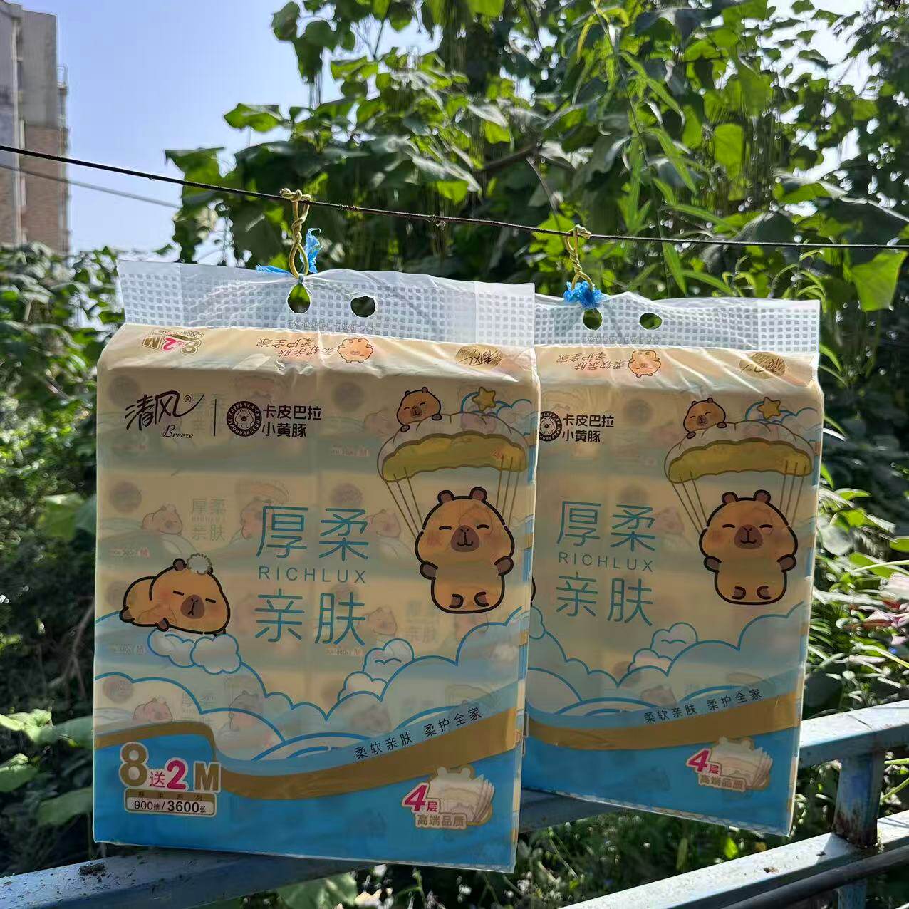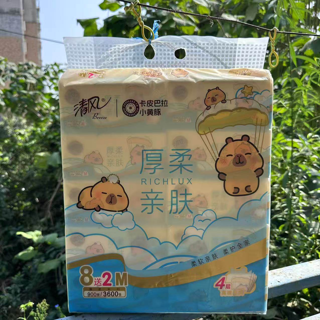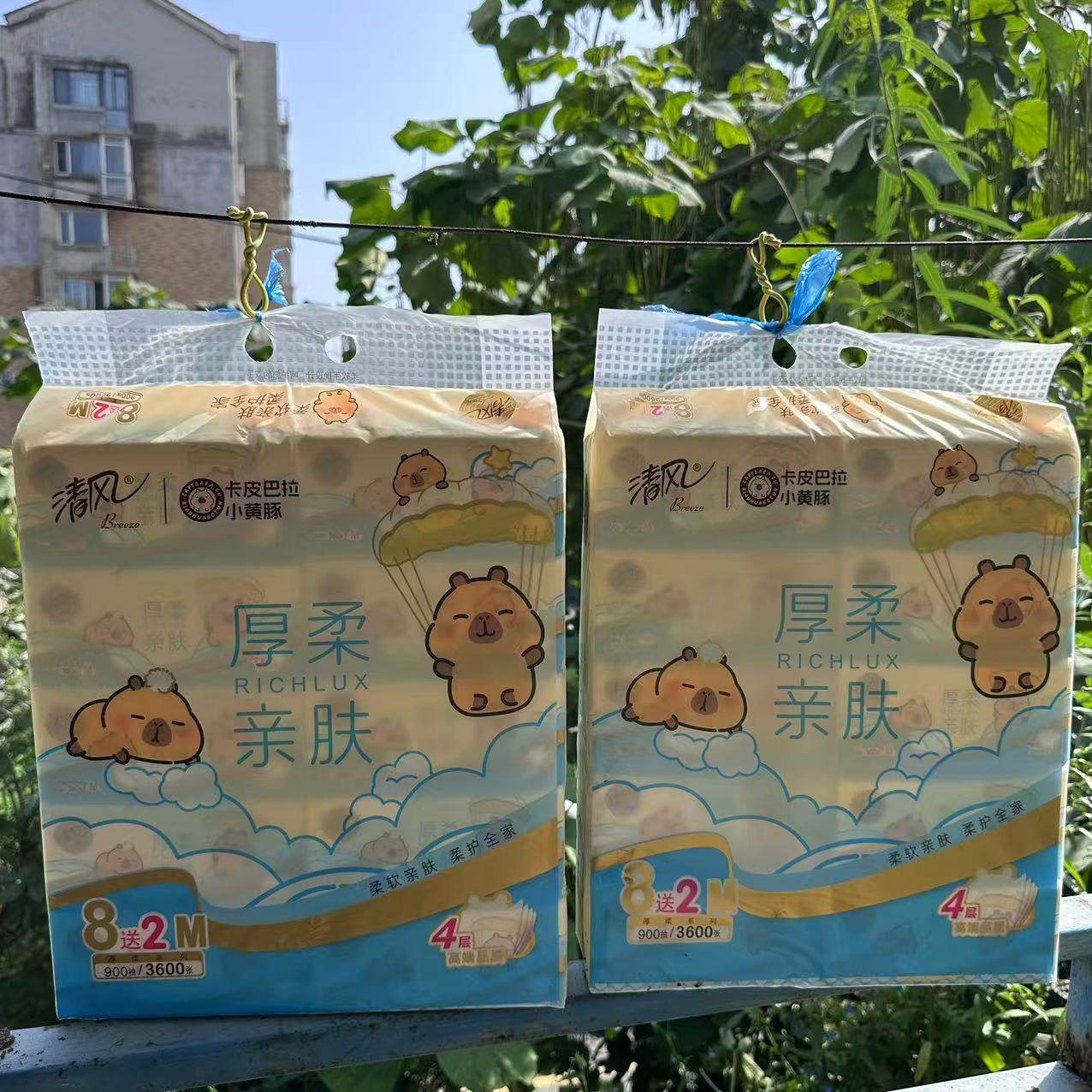 清风小黄豚卡皮巴拉10连包抽纸厚柔亲肤M码4层90抽无荧光剂面巾纸