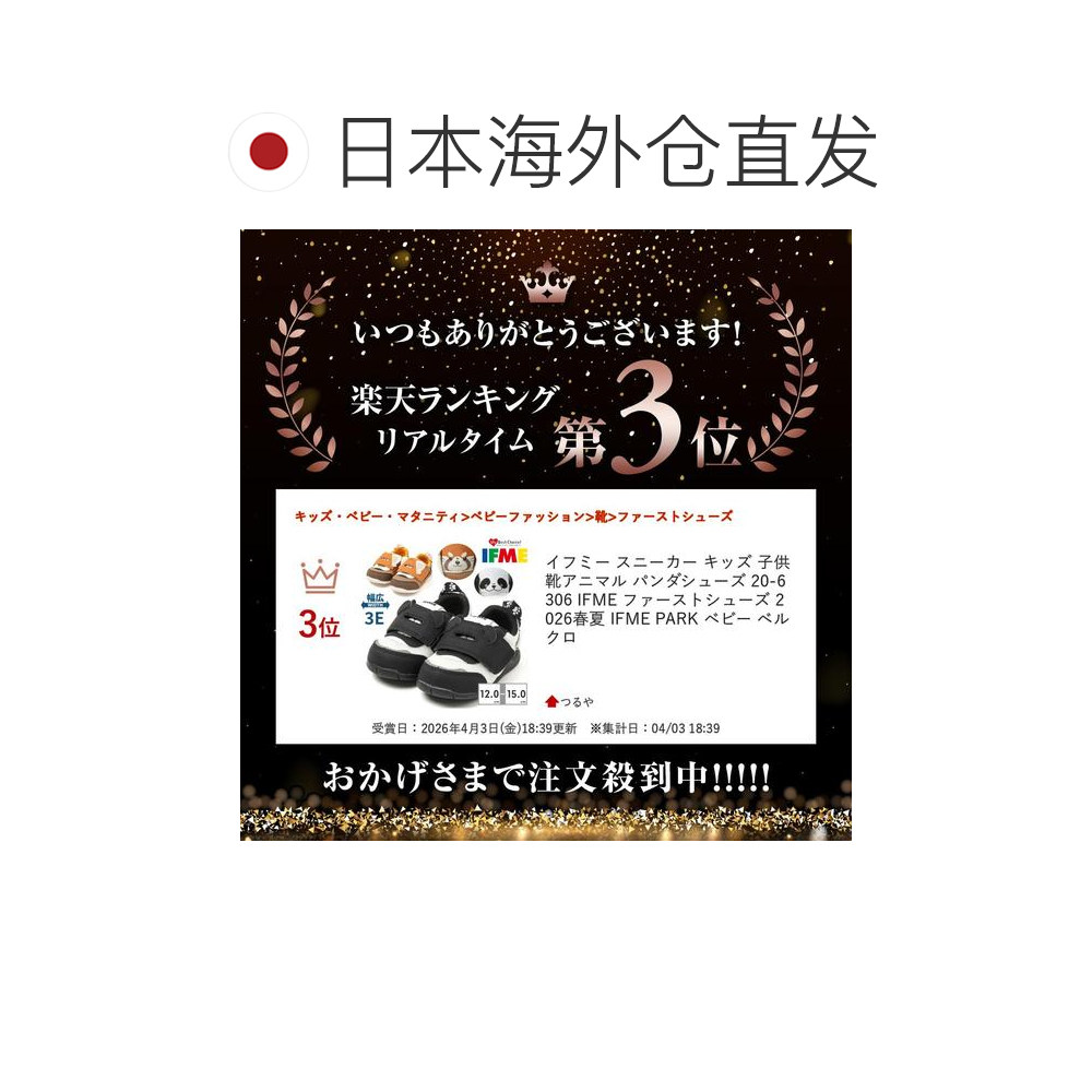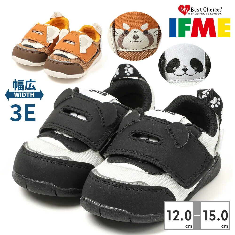 日本直邮IFME 儿童运动鞋熊猫图案20-6306IFME PARK 婴儿魔术贴运