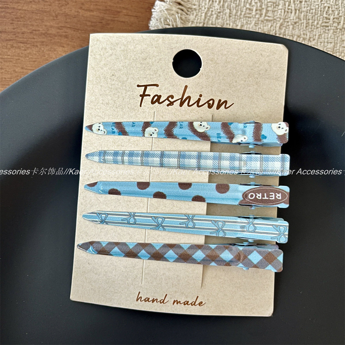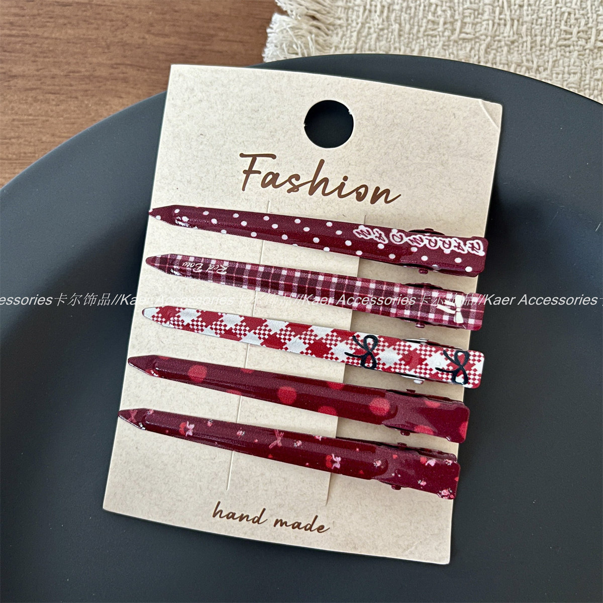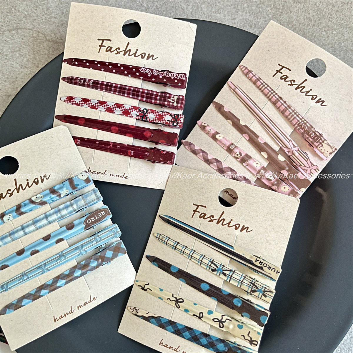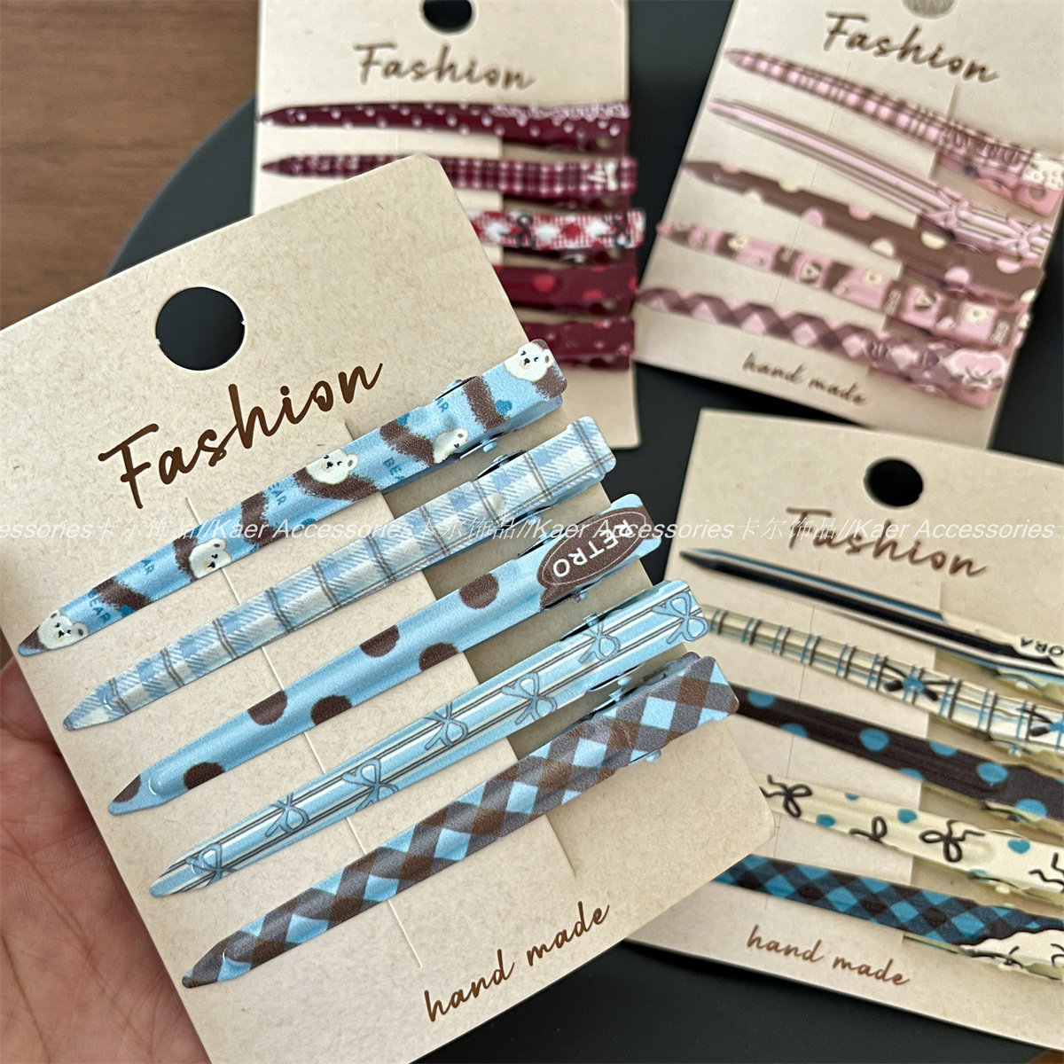 5个装 波点格纹蝴蝶结印花化妆夹发卡少女感碎发刘海夹长款鸭嘴夹