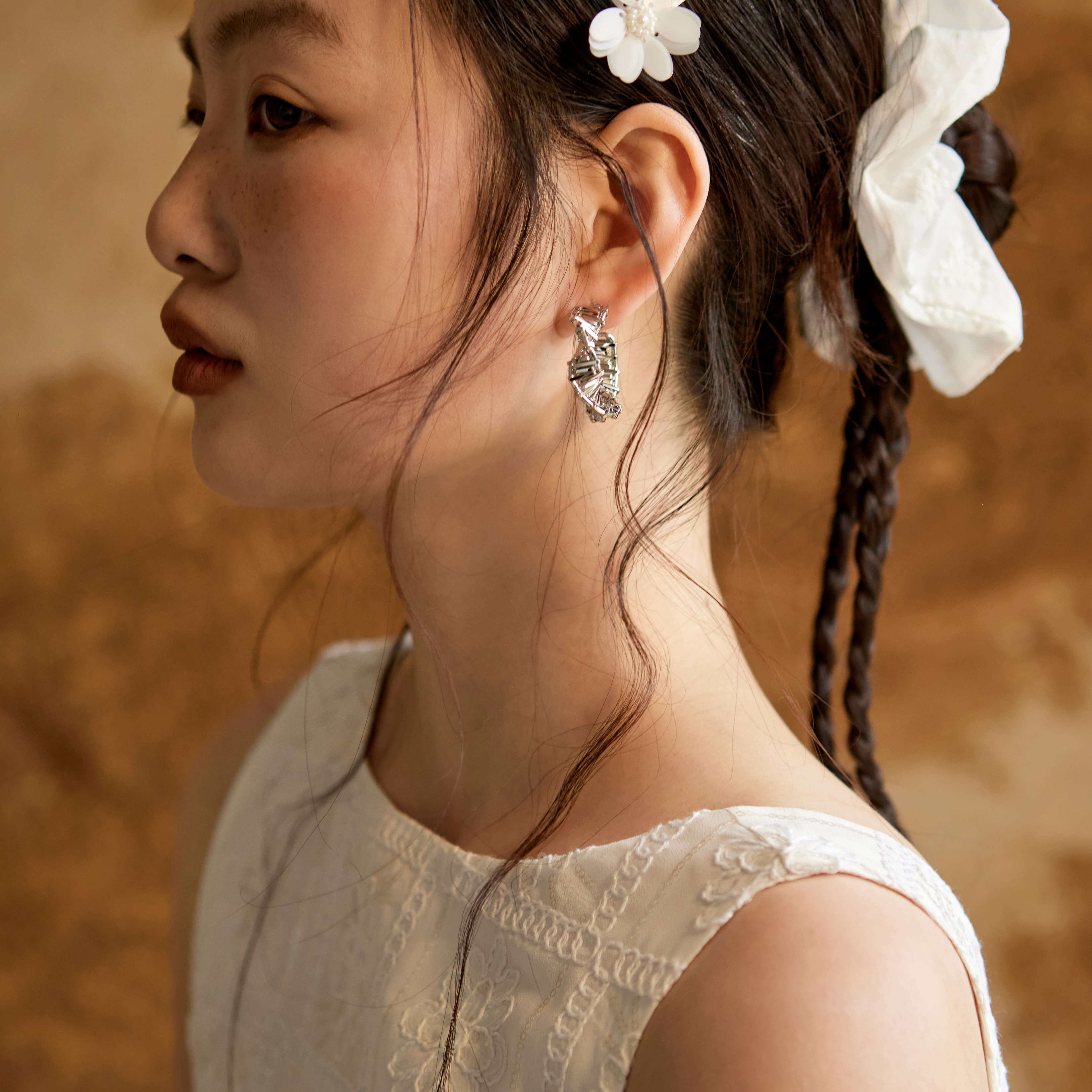 Shiitake 时髦精金属风旋转缠绕不规则C形耳圈耳钉