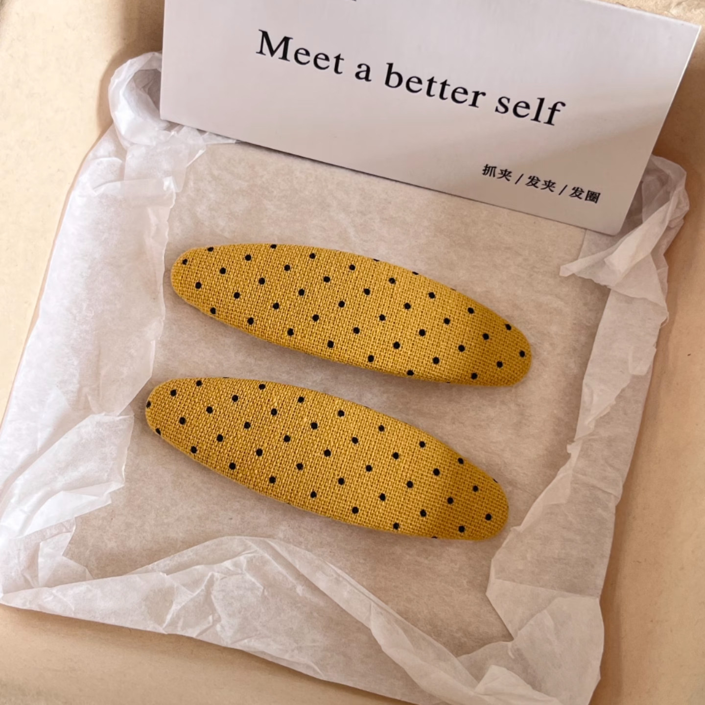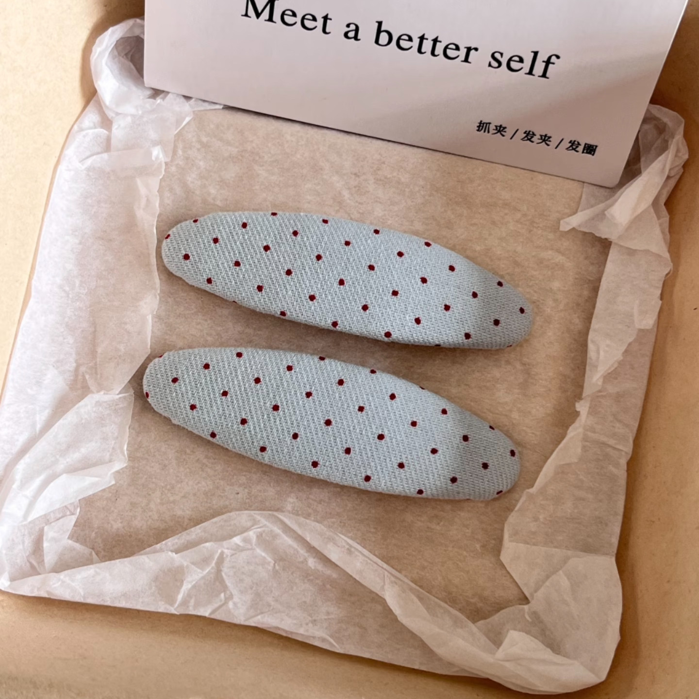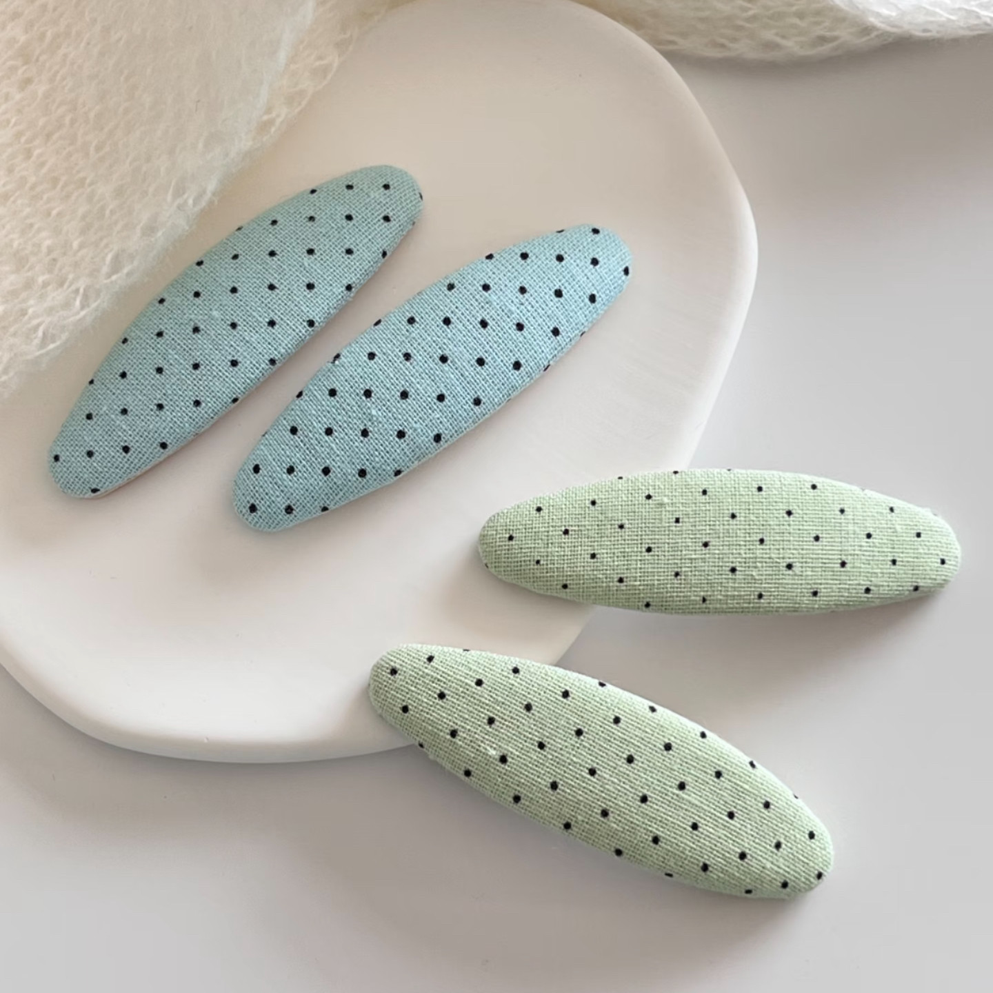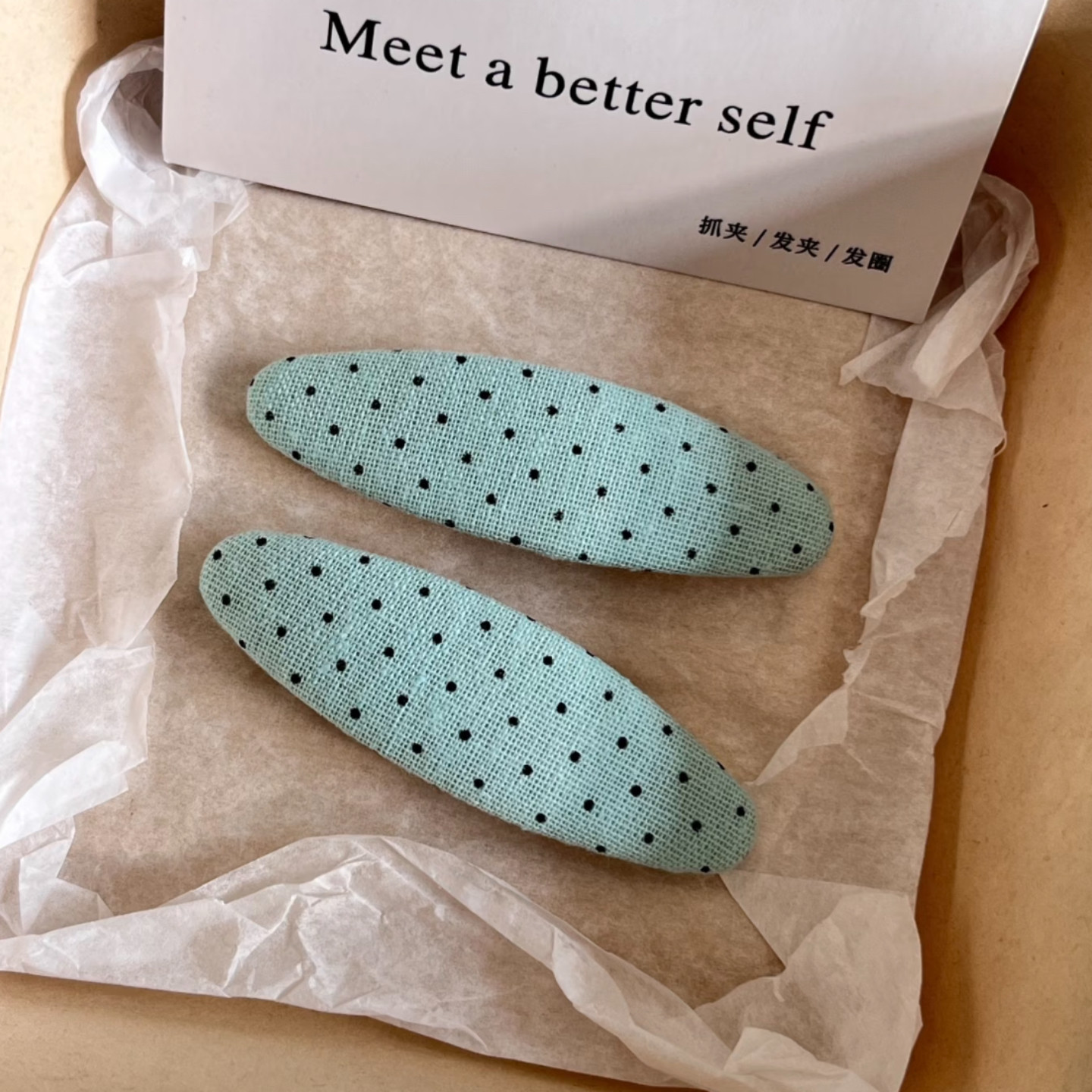韩系布艺新款清新薄荷绿色波点掰掰夹头饰发饰女前额侧边夹刘海夹
