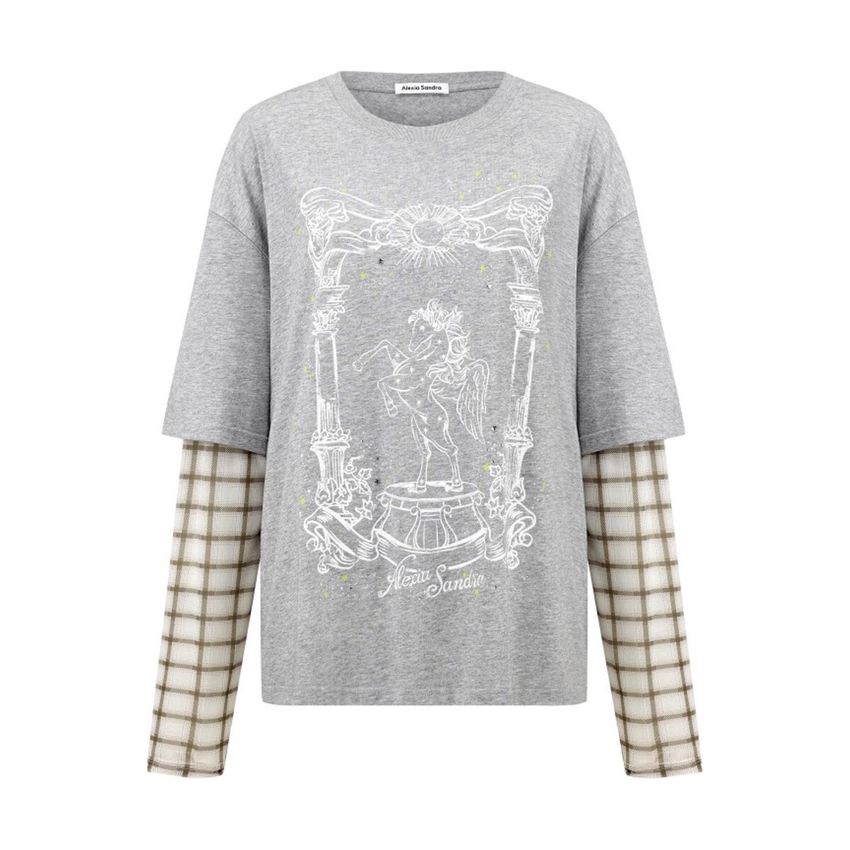 Alexia Sandra 26春夏男女同款假两件星星飞马长袖T恤银泰 301261