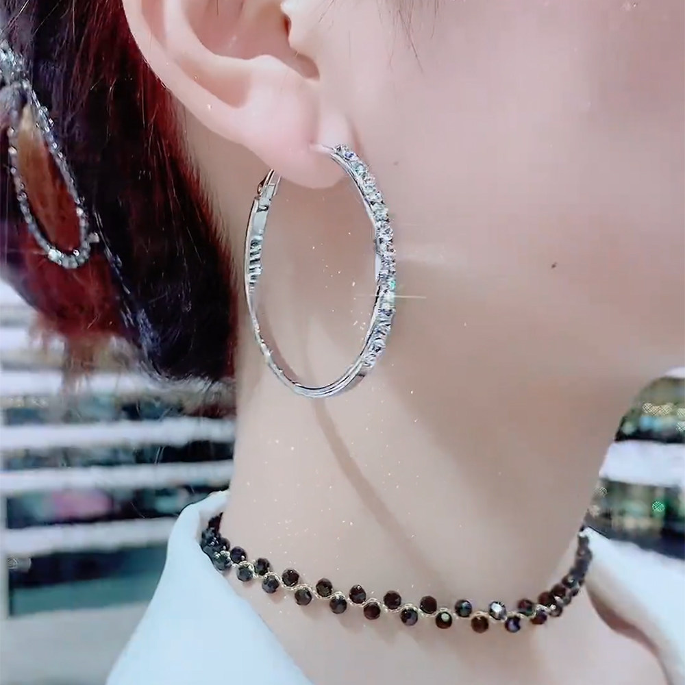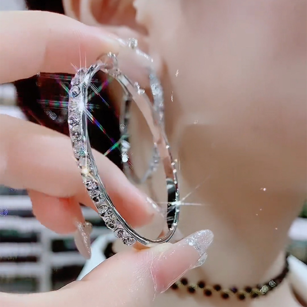 999银针耳环5cm洋气高档夸张设计超闪钻大圈圈时尚耳环女高级感