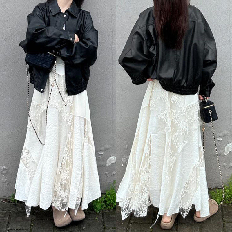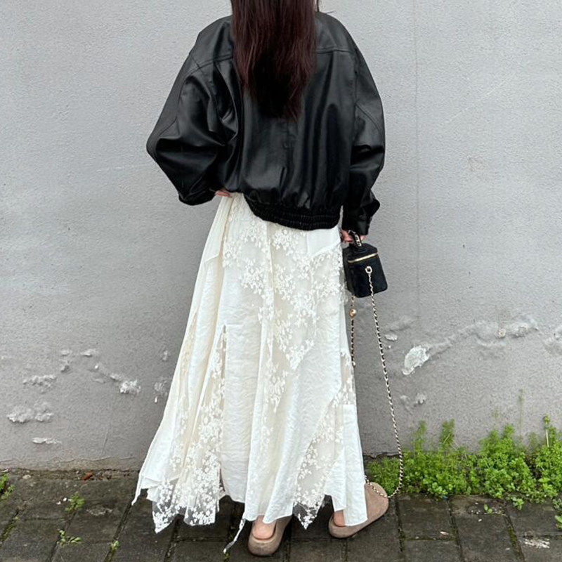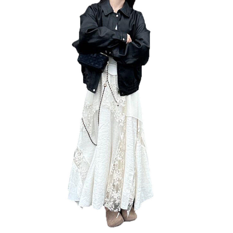 白色半身裙长版女秋季大尺码胖mm重工网纱刺绣拼接蕾丝不规则蛋糕
