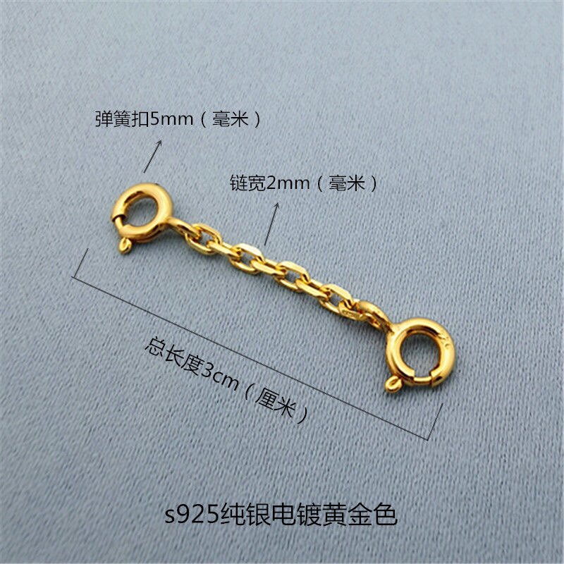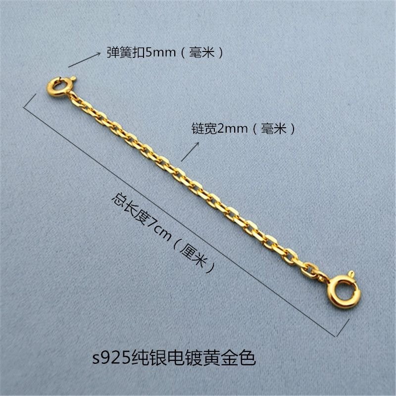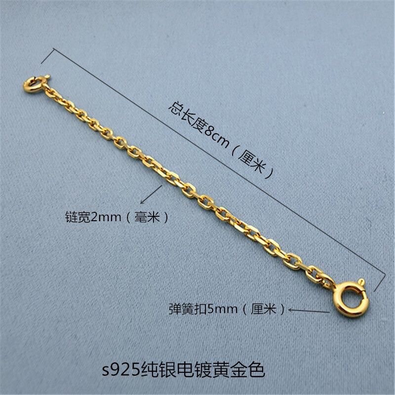s925纯银链条宽2mm镀黄金色延长链项链手链加固双扣头十字太角链