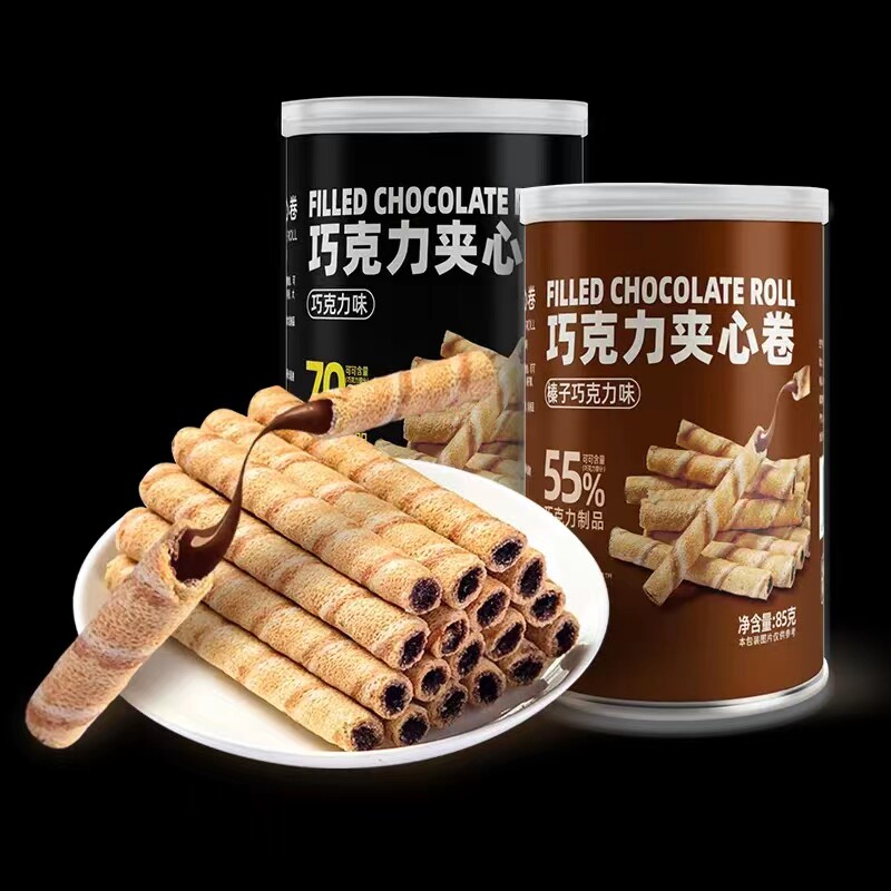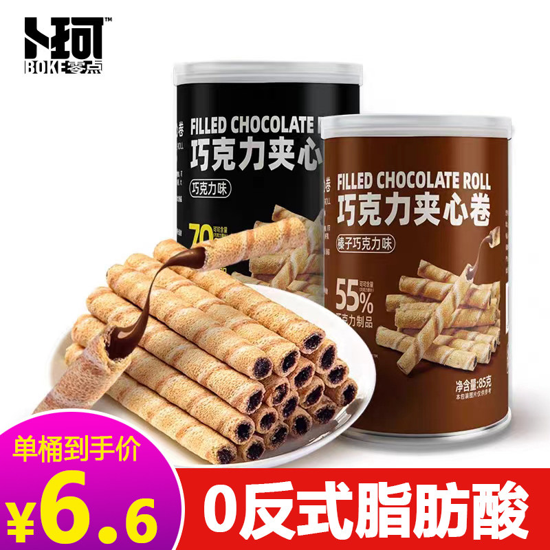 卜珂黑巧克力夹心卷85g蛋卷夹心饼干脆卷罐装办公室点心休闲零食