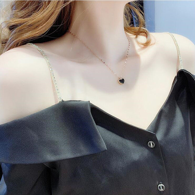 2020新款满钻小红心项链女潮红黑双面锁骨链百搭不掉色高级感性感