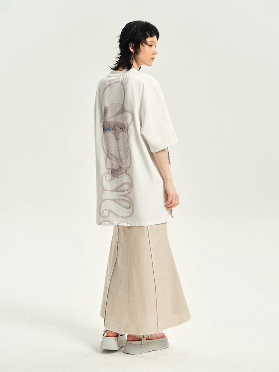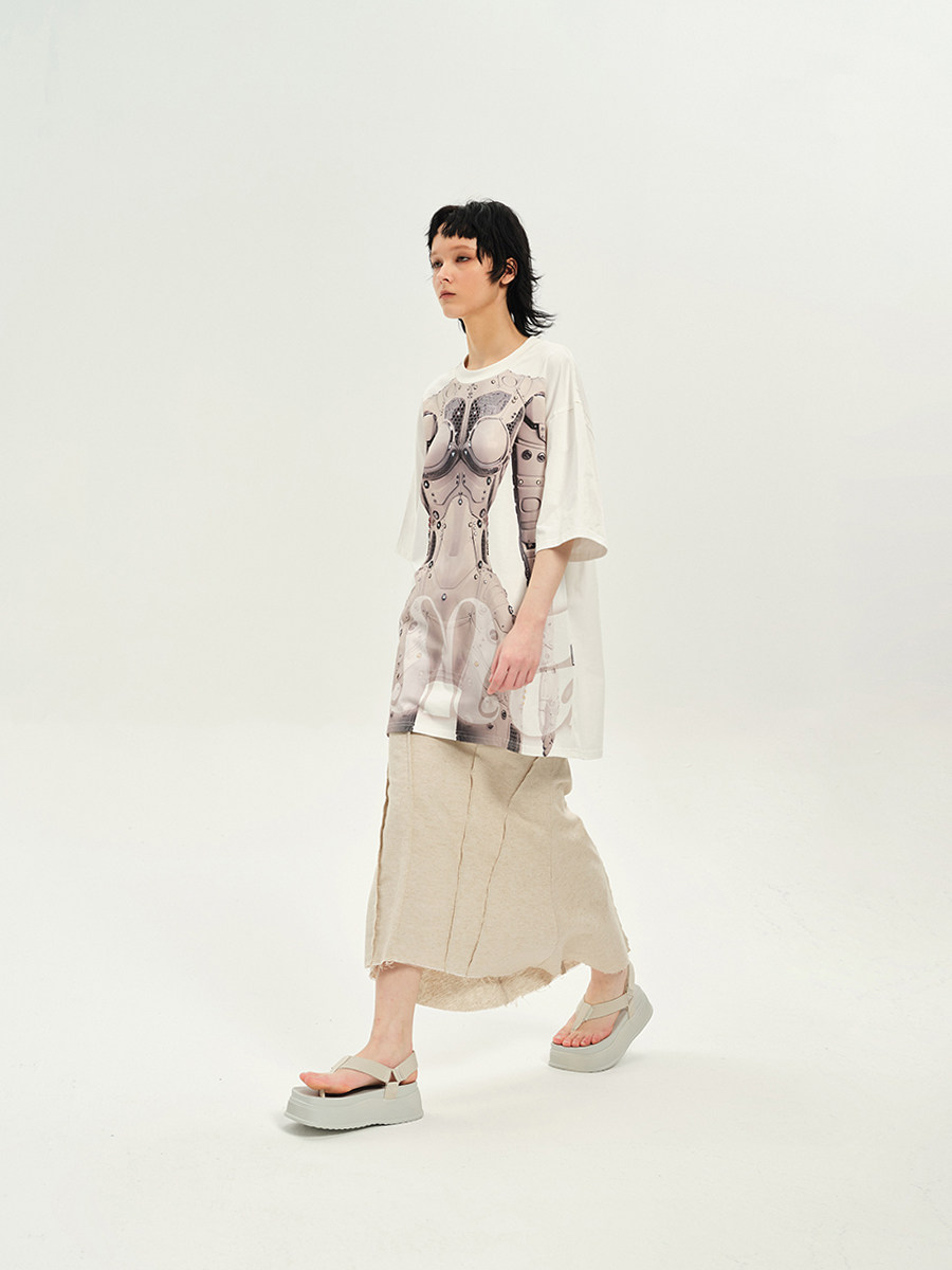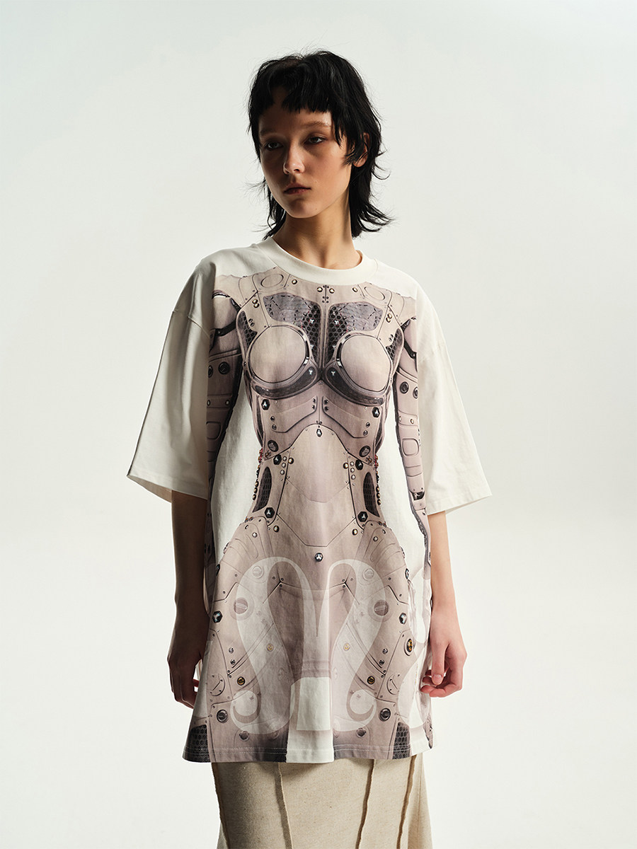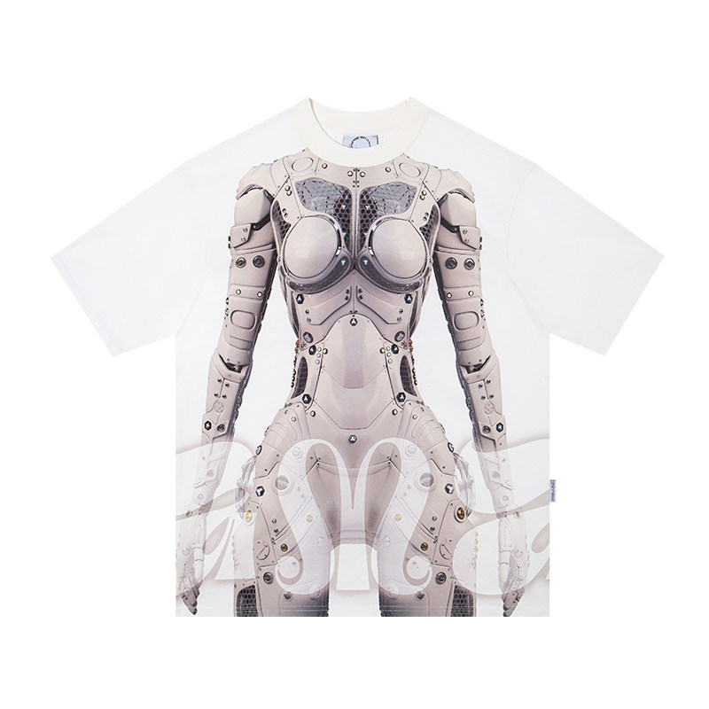 DAMAGE ASIA 赛博姬AI机器人印花未来感宽松圆领夏季T恤