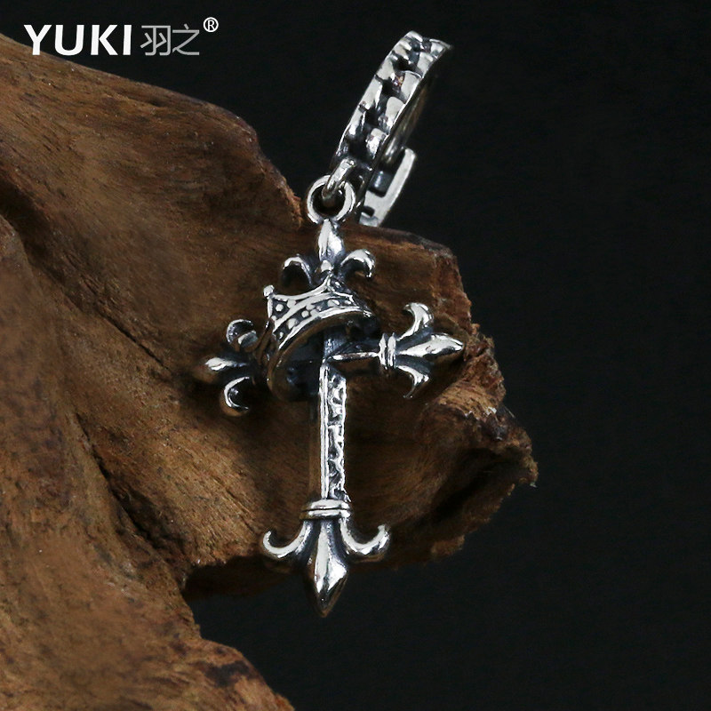 YUKI男士复古925纯银耳环哥特宫廷风十字架耳扣气质单只潮女耳钉