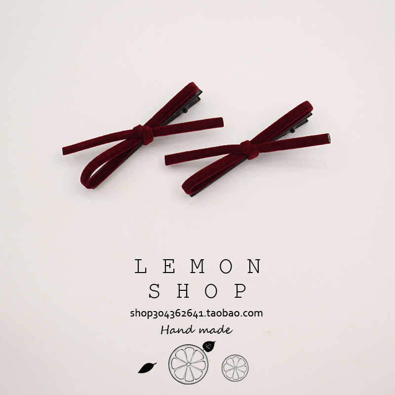 植绒发夹蝴蝶结边夹女侧边碎发刘海夹子甜美少女鸭嘴夹发卡头饰品
