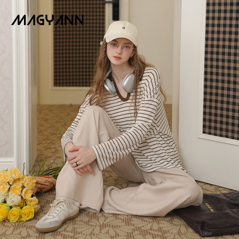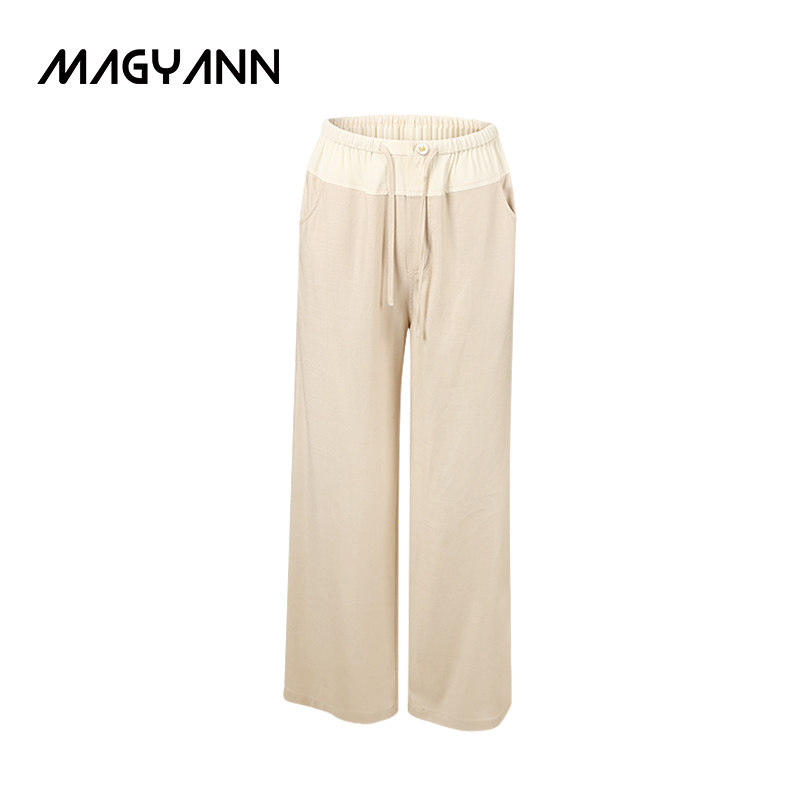 【燕麦云朵】Magyann原创设计2026春抽绳撞色长裤拼松紧腰休闲裤