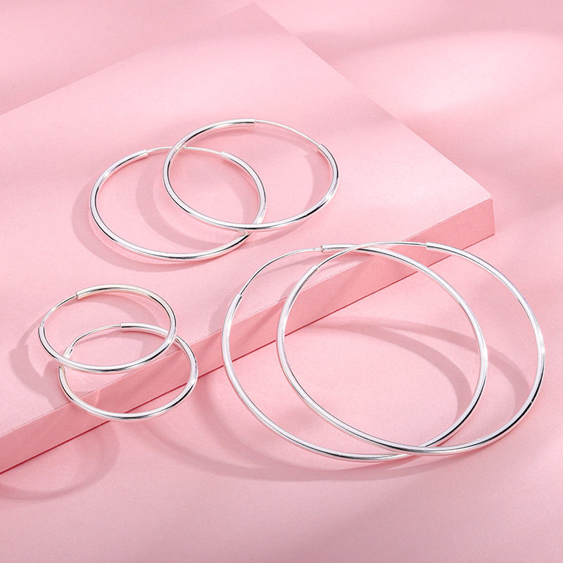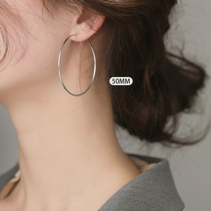 925银耳环女简约百搭超大圈圈设计感时尚高级感素圈养耳洞银耳圈