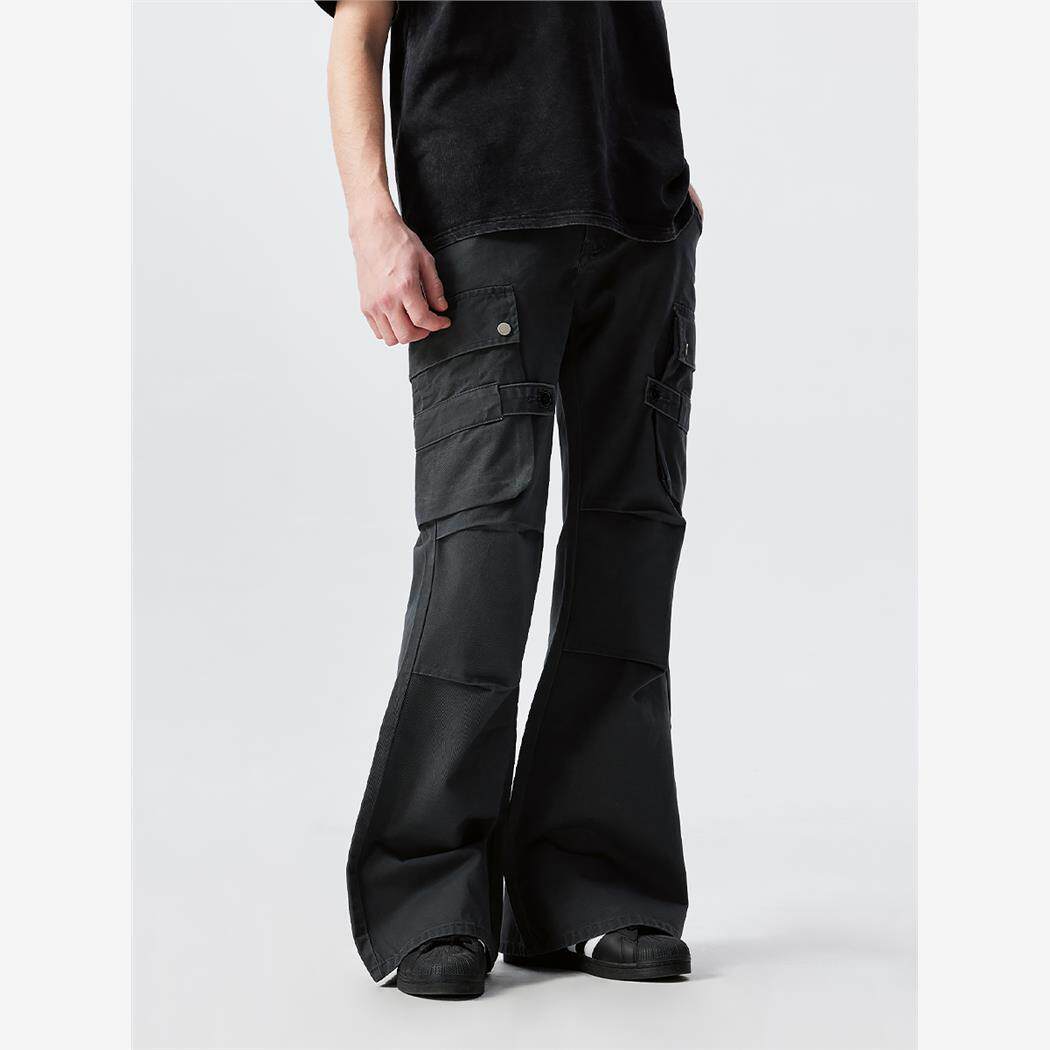 新因素美式高街宽松工装裤多口袋膝盖折叠褶皱男款直筒垂感牛仔裤