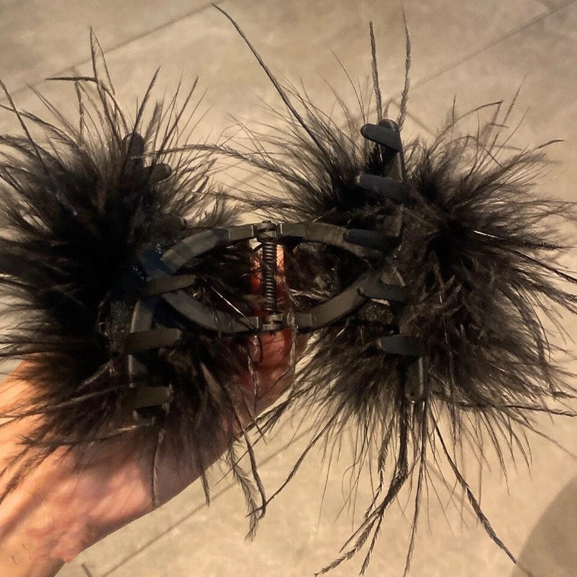 韩版ins黑色鸵鸟羽毛鲨鱼夹气质百搭发夹高级感后脑勺盘发抓夹子