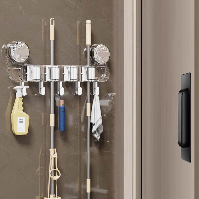 Dual suction cup mop holder wall-mounted storage rack for ba