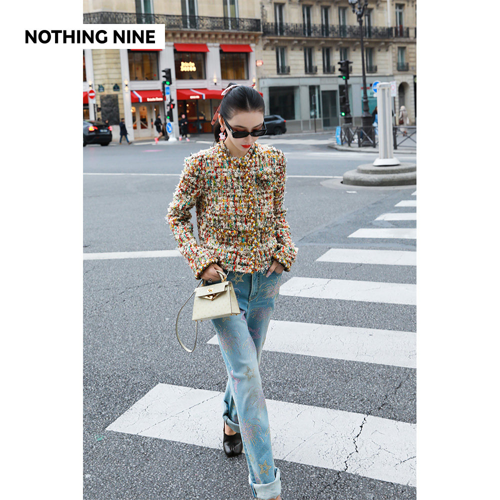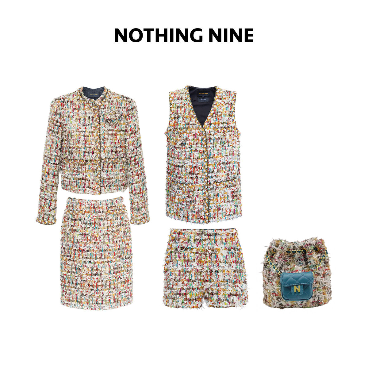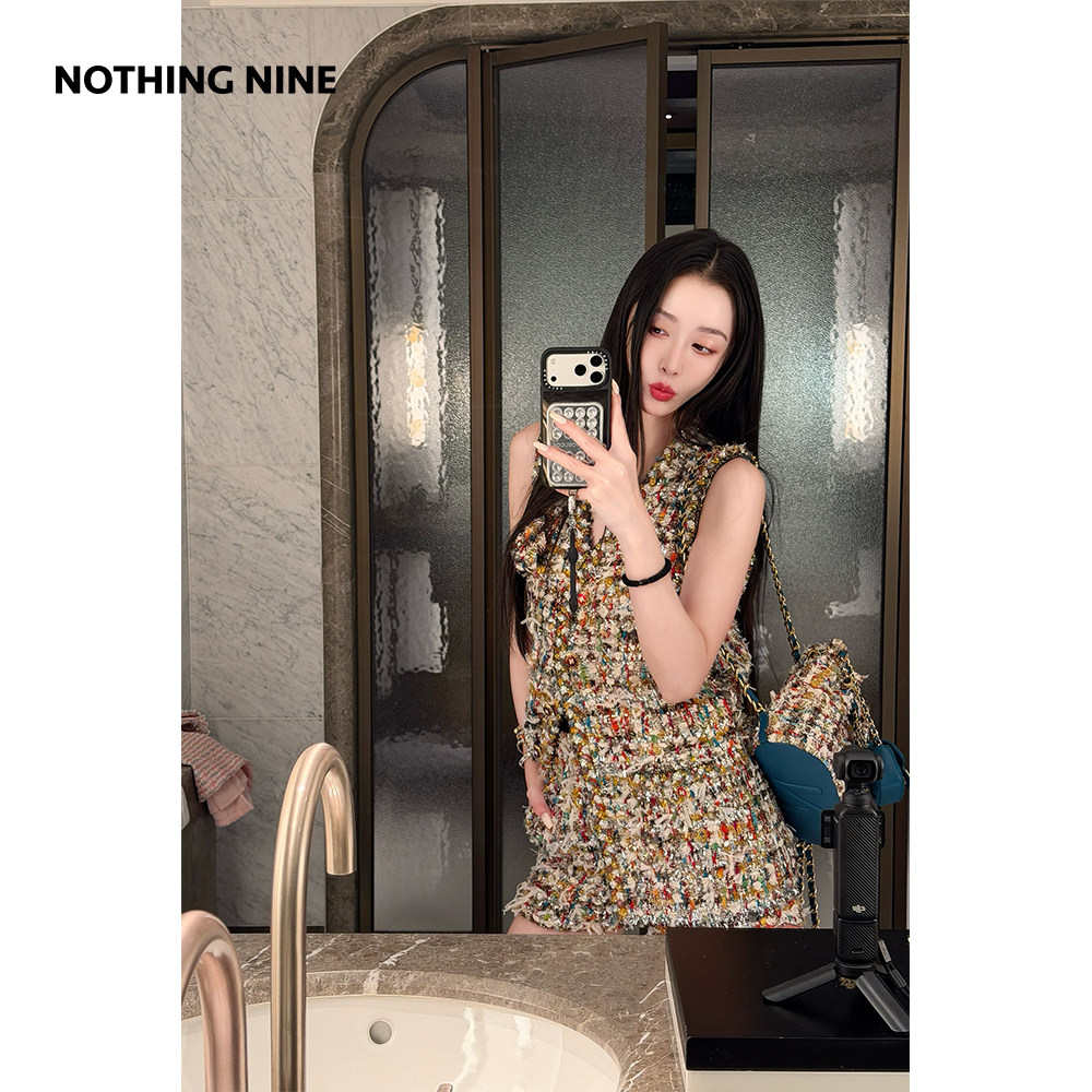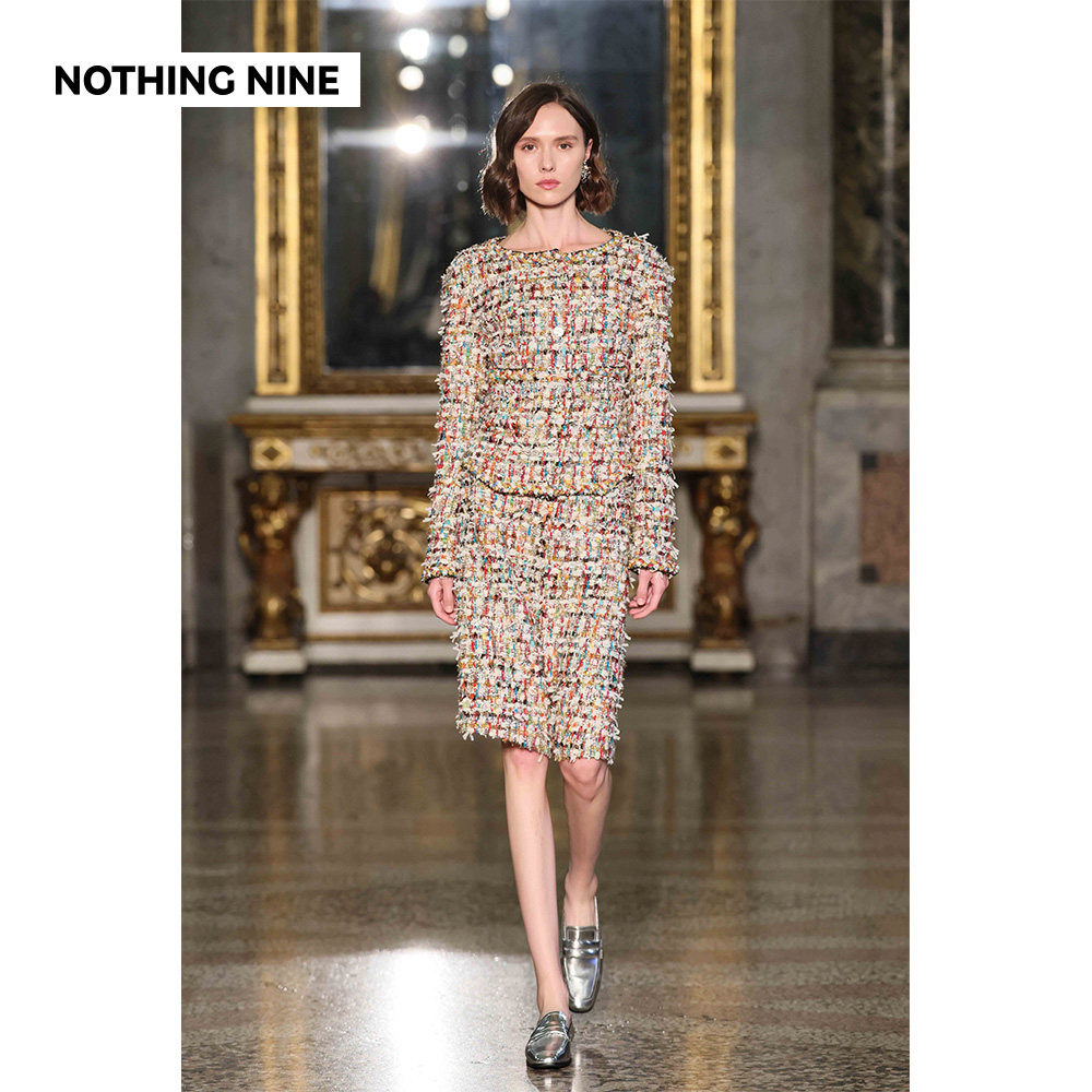 NOTHING NINE 米兰秀款霓虹碎金法国进口scop羊毛花呢外套/半裙