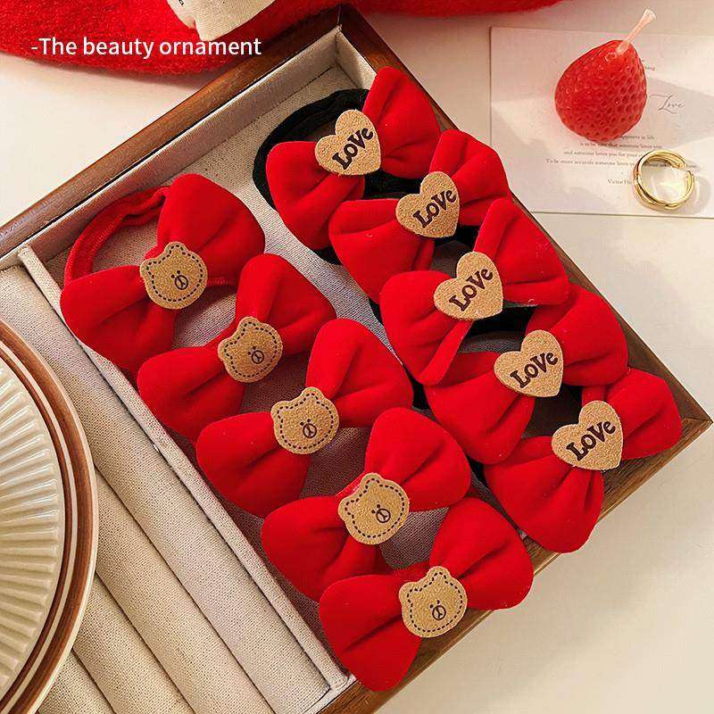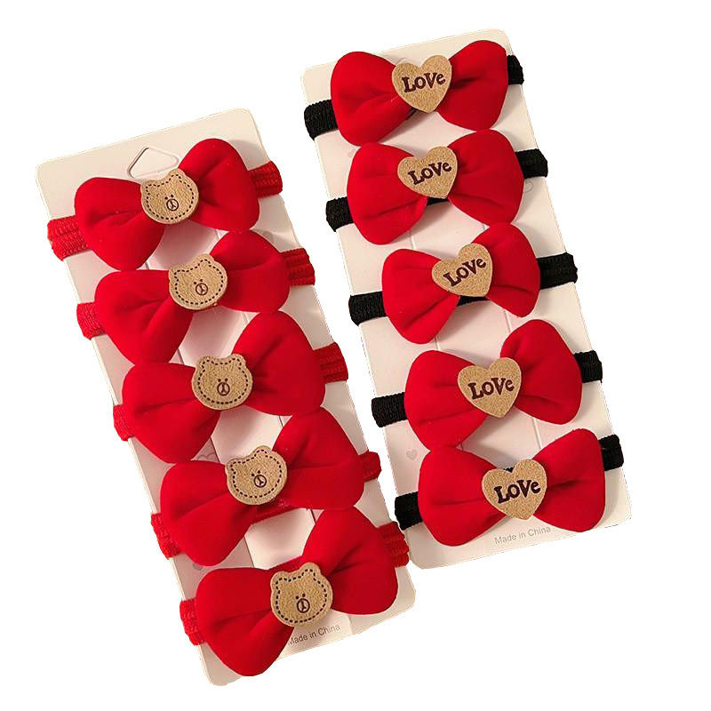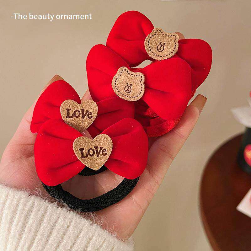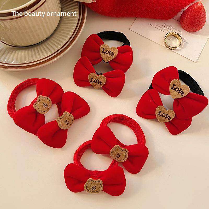 新年头饰红色头绳儿童小熊蝴蝶结发圈丸子头高弹力皮筋女扎头发绳