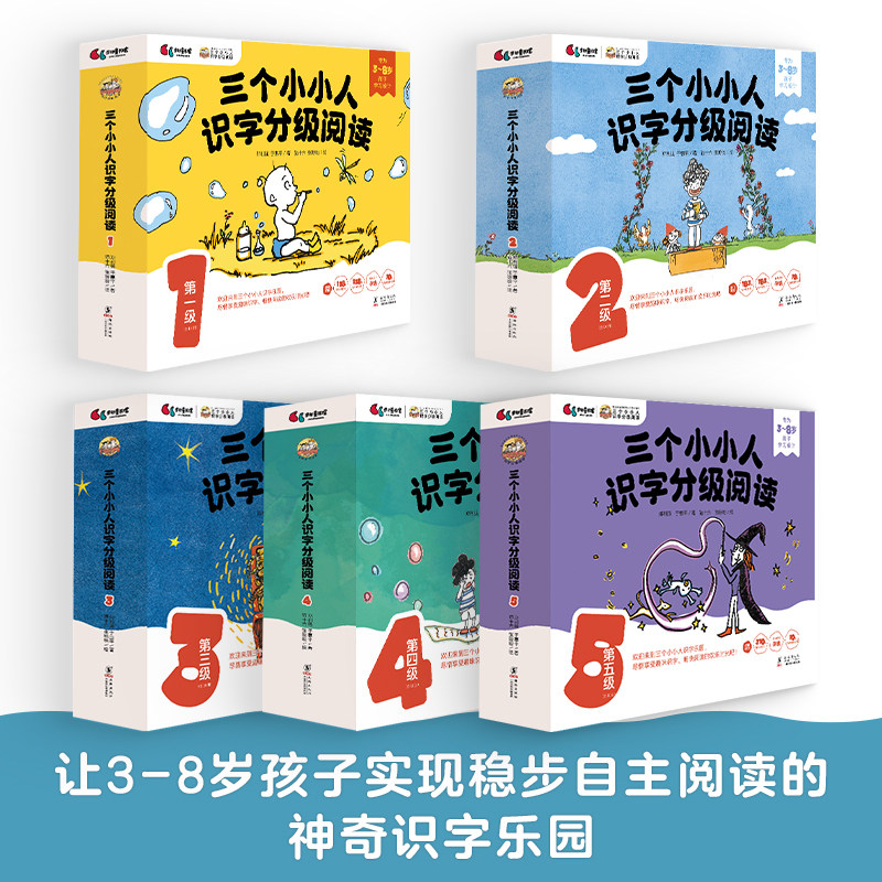 三个小小人识字分级阅读全五级50册 幼儿启蒙绘本图画书3~8岁适用 读故事听音频识字卡 趣味故事读物书籍