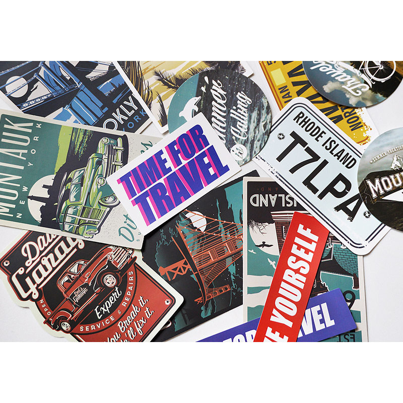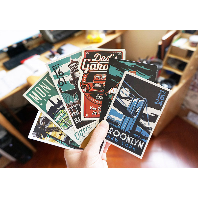 40枚日默瓦欧美城市复古哑面贴纸滑板贴电动车摩托车个性车贴防水