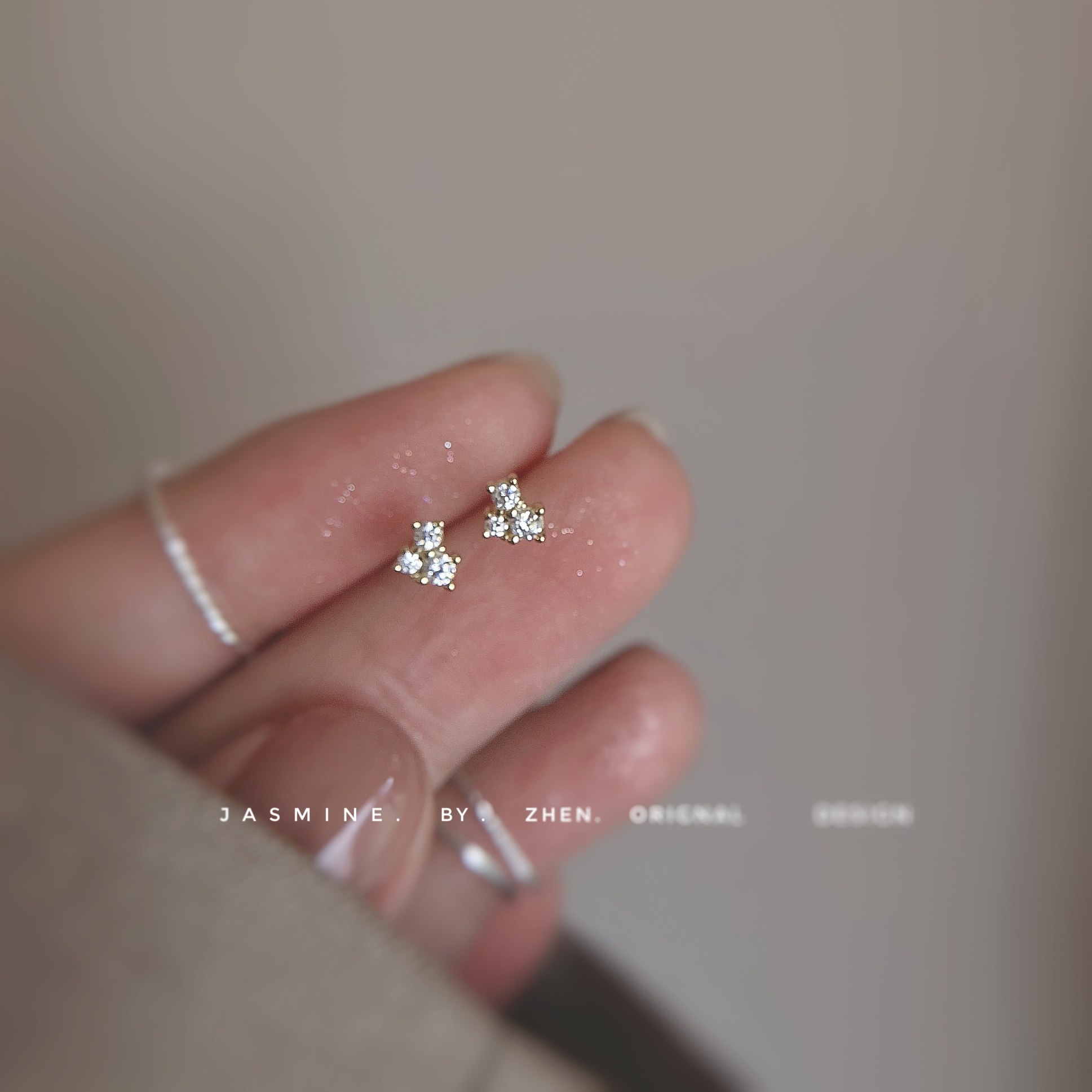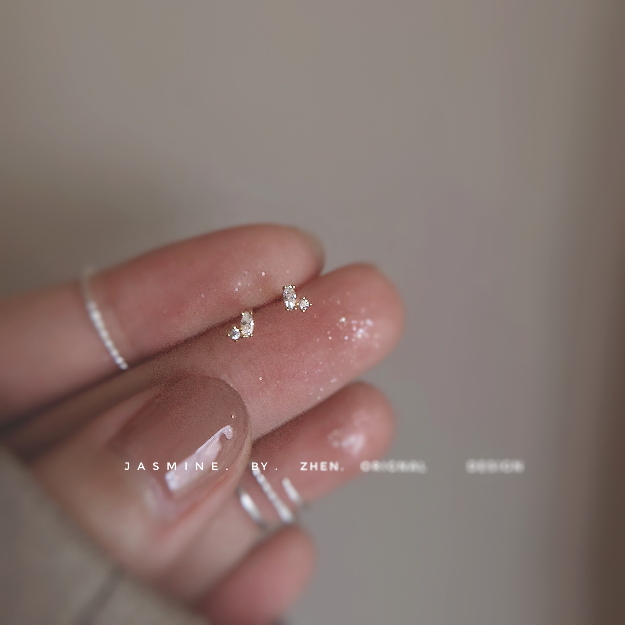 纯银一组亮亮小耳钉隐形闪亮耳骨钉养耳洞睡觉不用摘耳饰女耳骨钉