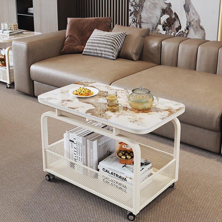 奶油风客厅沙发边桌可移动边几岩板小茶几置物架小推车创意床头桌