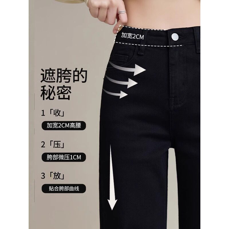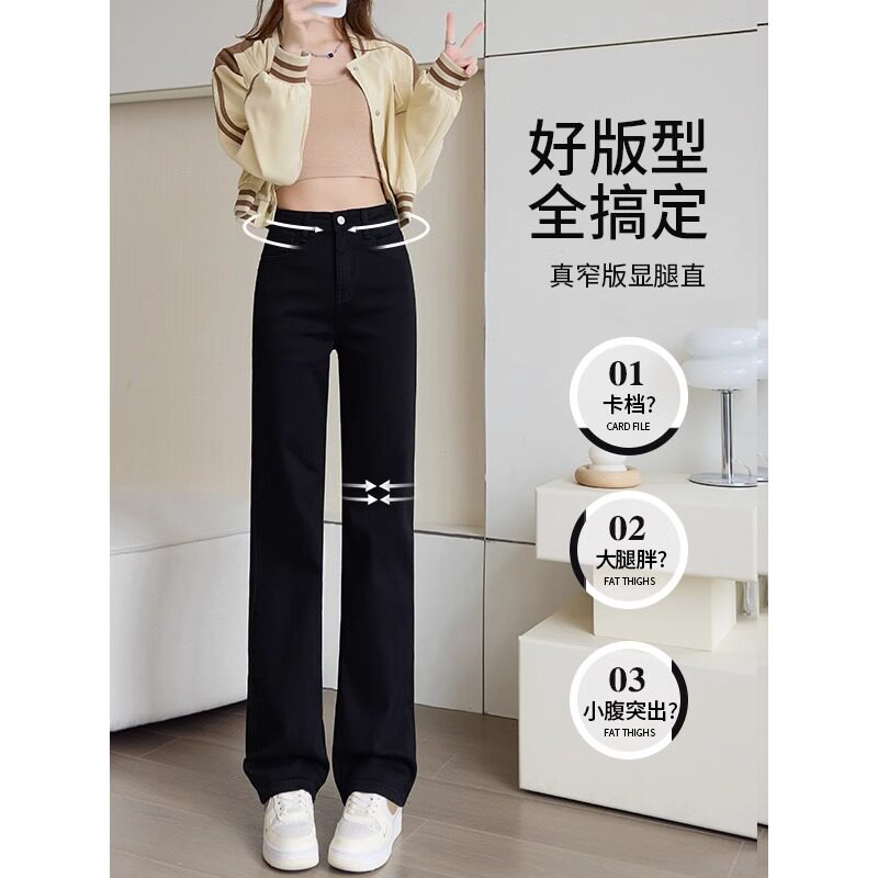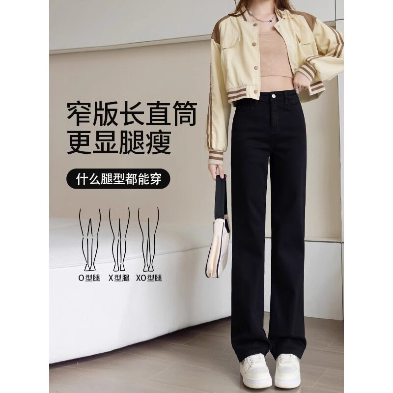 黑色高腰直筒牛仔裤女春秋2026年新款修身显瘦弹力百搭窄版烟管裤