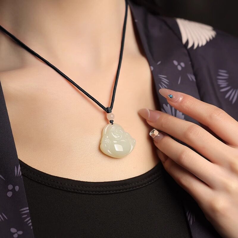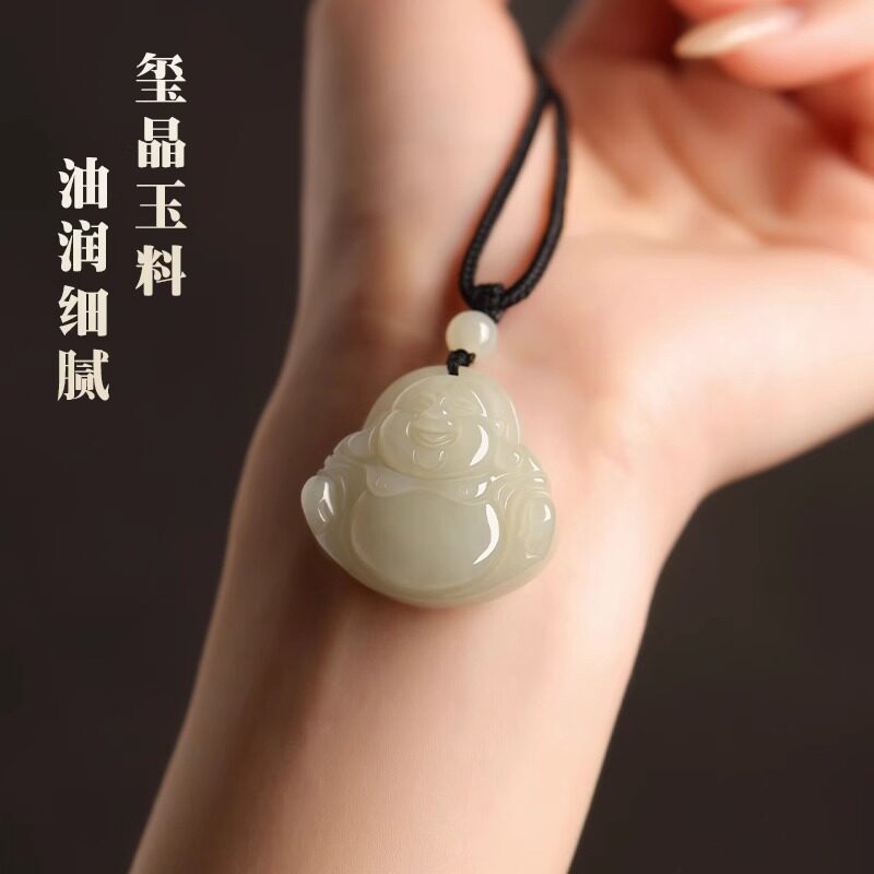 仟喜梵“万事兴”天然和田玉弥勒佛公玉吊坠项链男女款佛头平安符