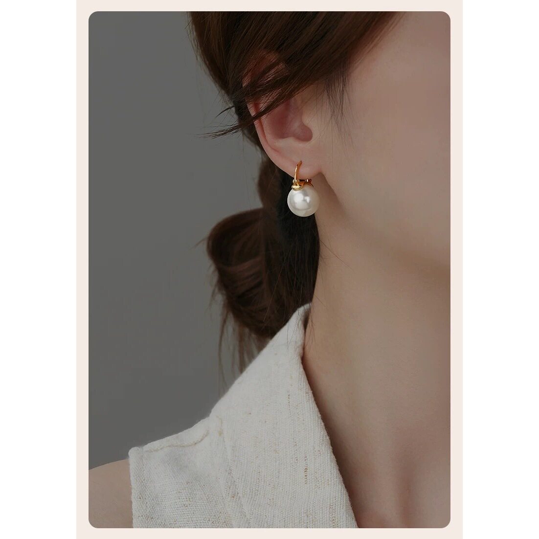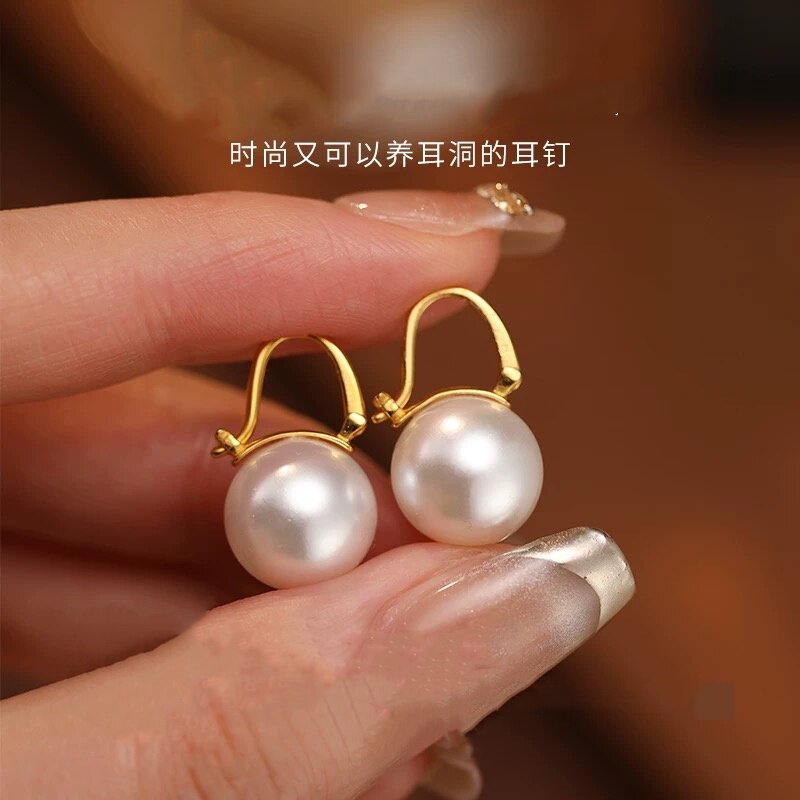 [董卿同款]2026流行正圆白色珍珠耳扣优雅小灯泡时尚女士耳环1376
