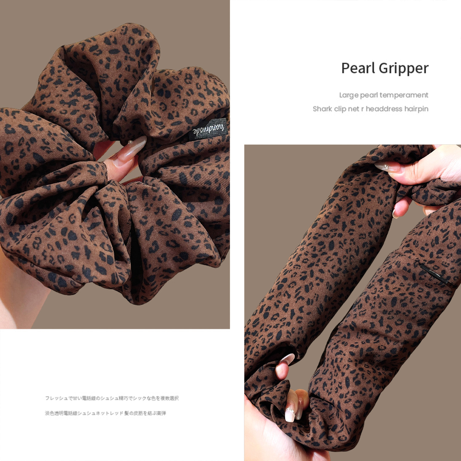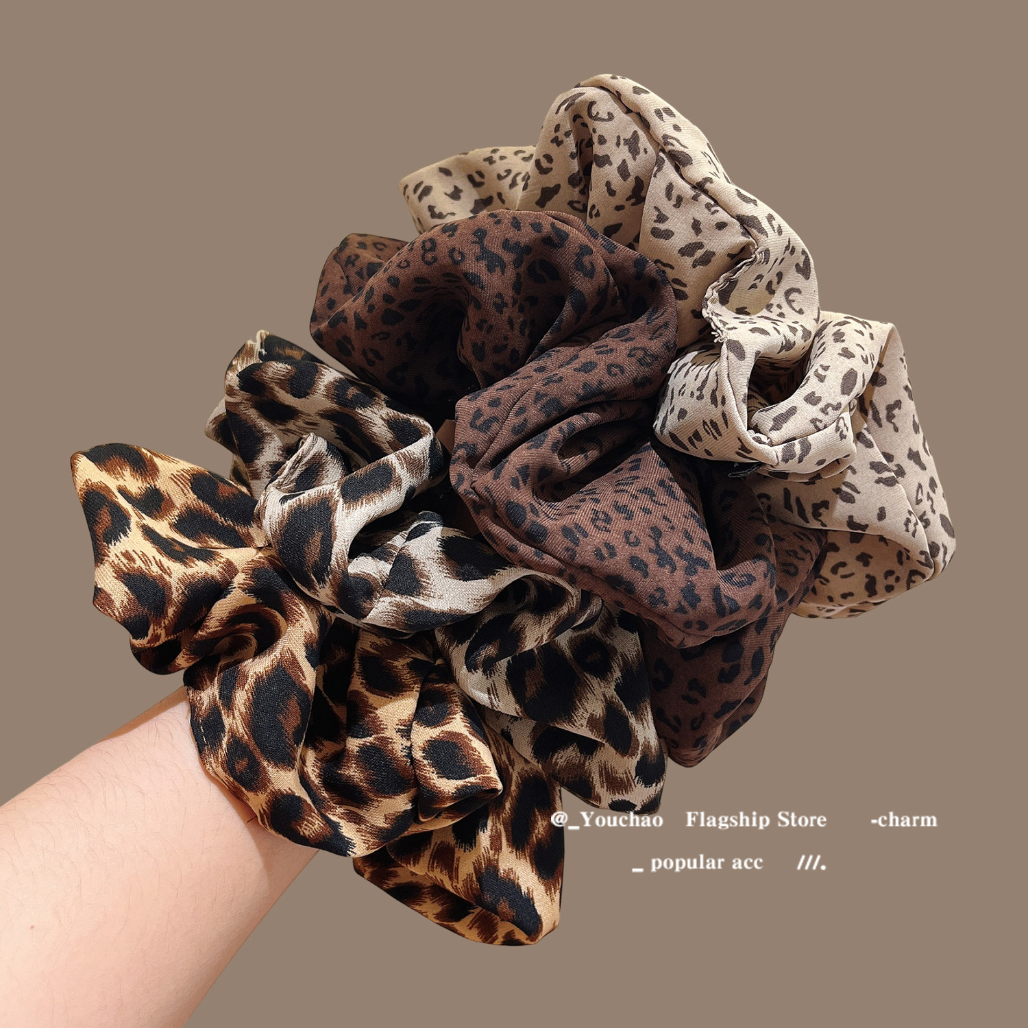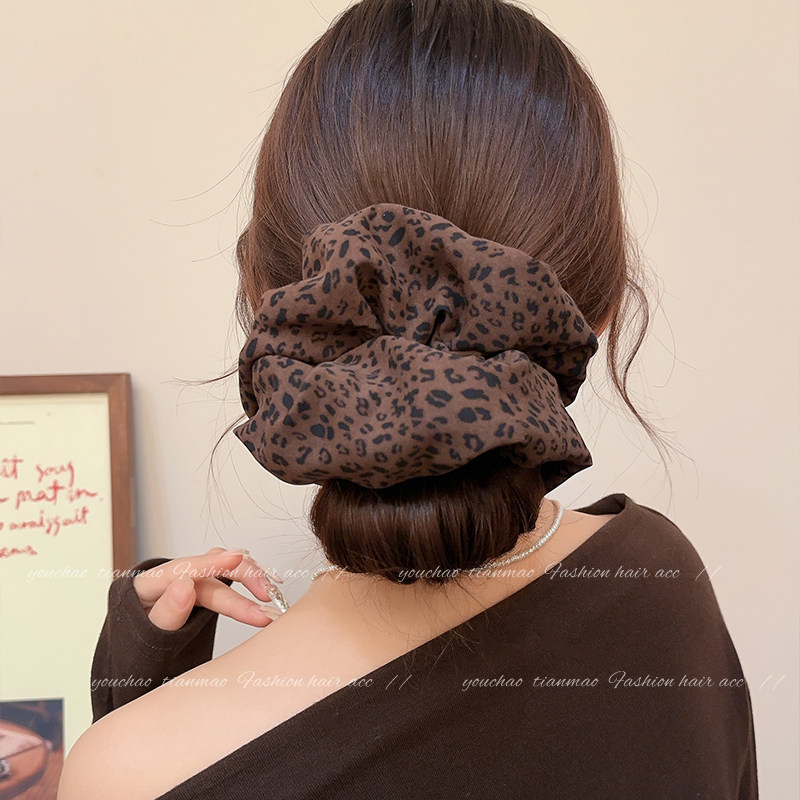 秋冬复古豹纹超大肠发圈女蓬松裙边扎发头绳2026新款皮筋头花发饰